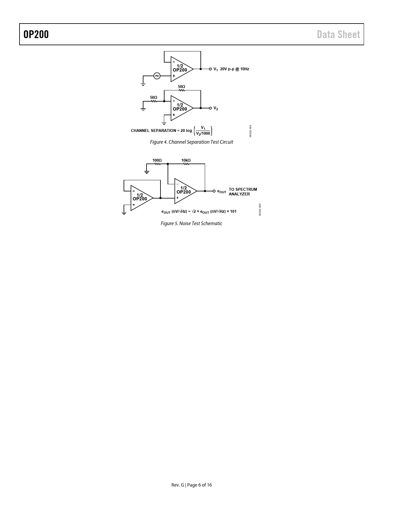 OP200. Data Sheet. 1/2. 1 20V p-p @ 10Hz. 50Ω. CHANNEL SEPARATION = 20 log V. 2/1000. 100Ω. 10kΩ. TO SPECTRUM. OUT ANALYZER