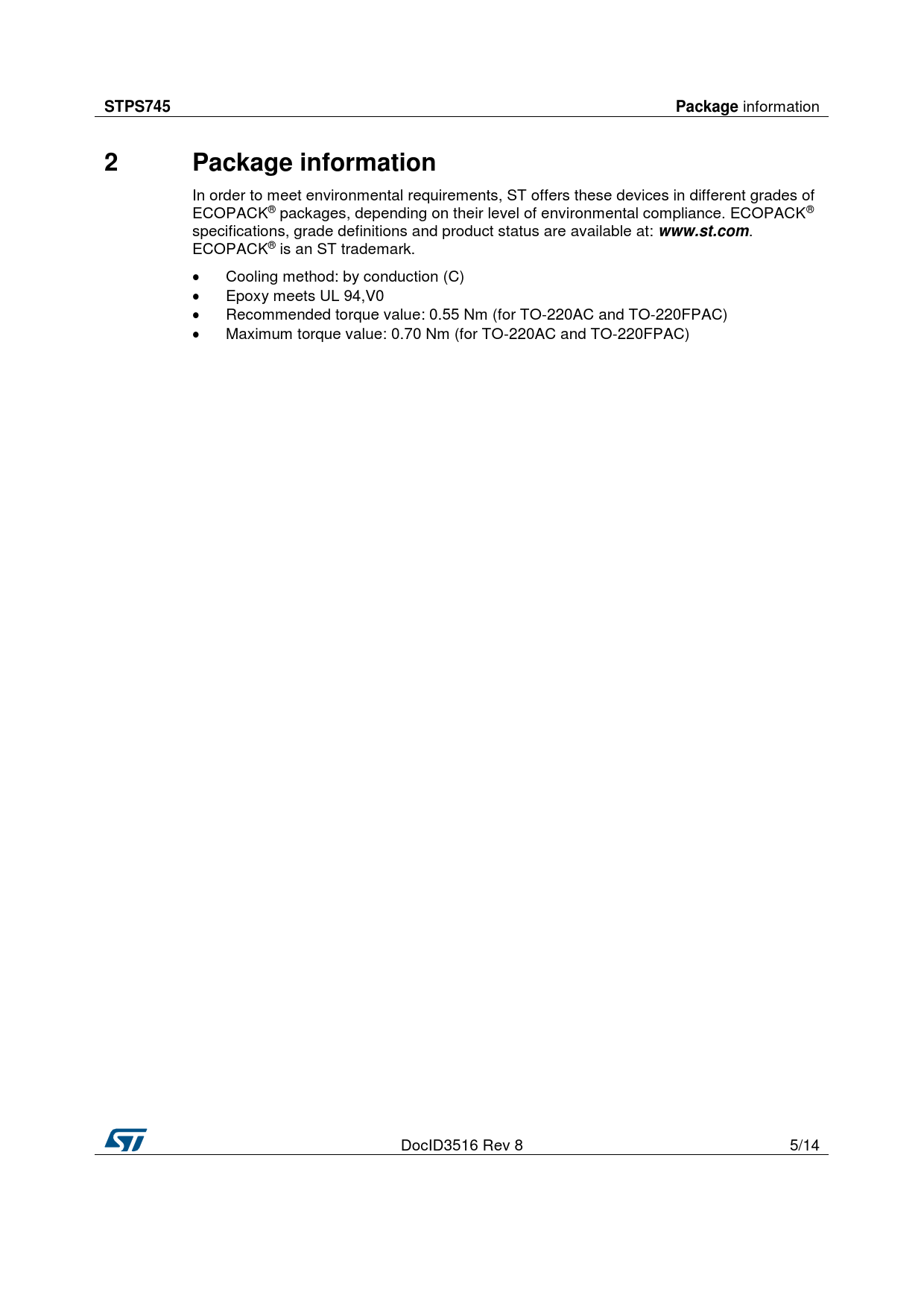 STPS745. Package. Package information. www.st.com
