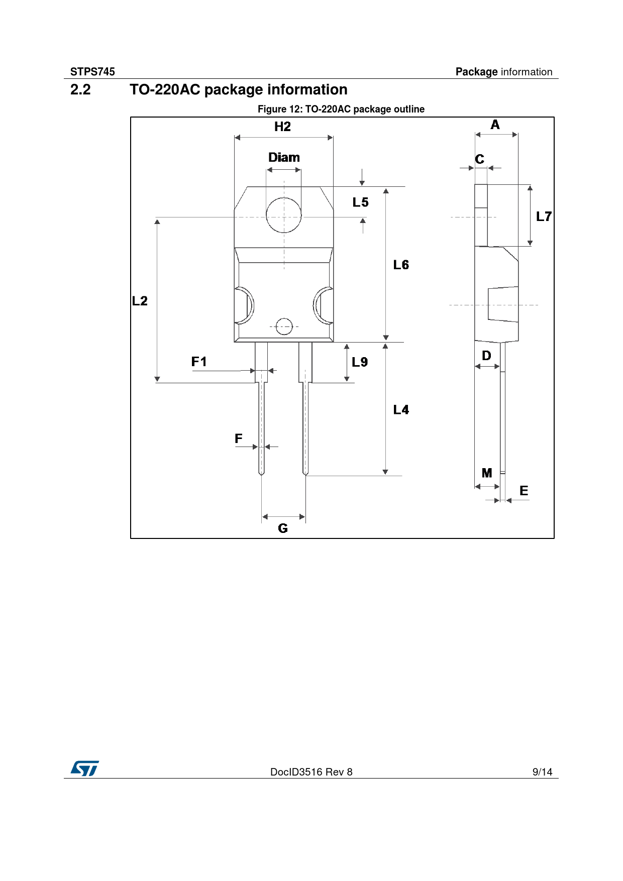 | 页数 / 页 | 14 / 9 — STPS745. Package. 2.2. TO-220AC package information. Figure 12: TO-220AC … |