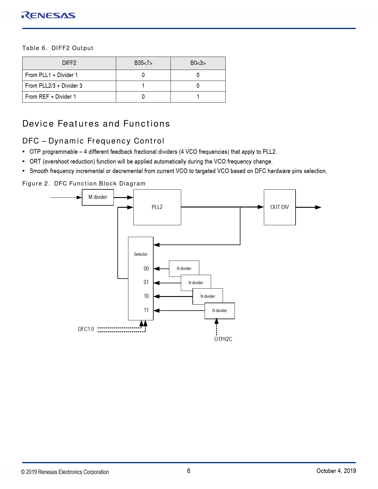 Table 6. DIFF2 Output. DIFF2. B35<7>. B0<3>. Device Features and Functions. DFC – Dynamic Frequency Control