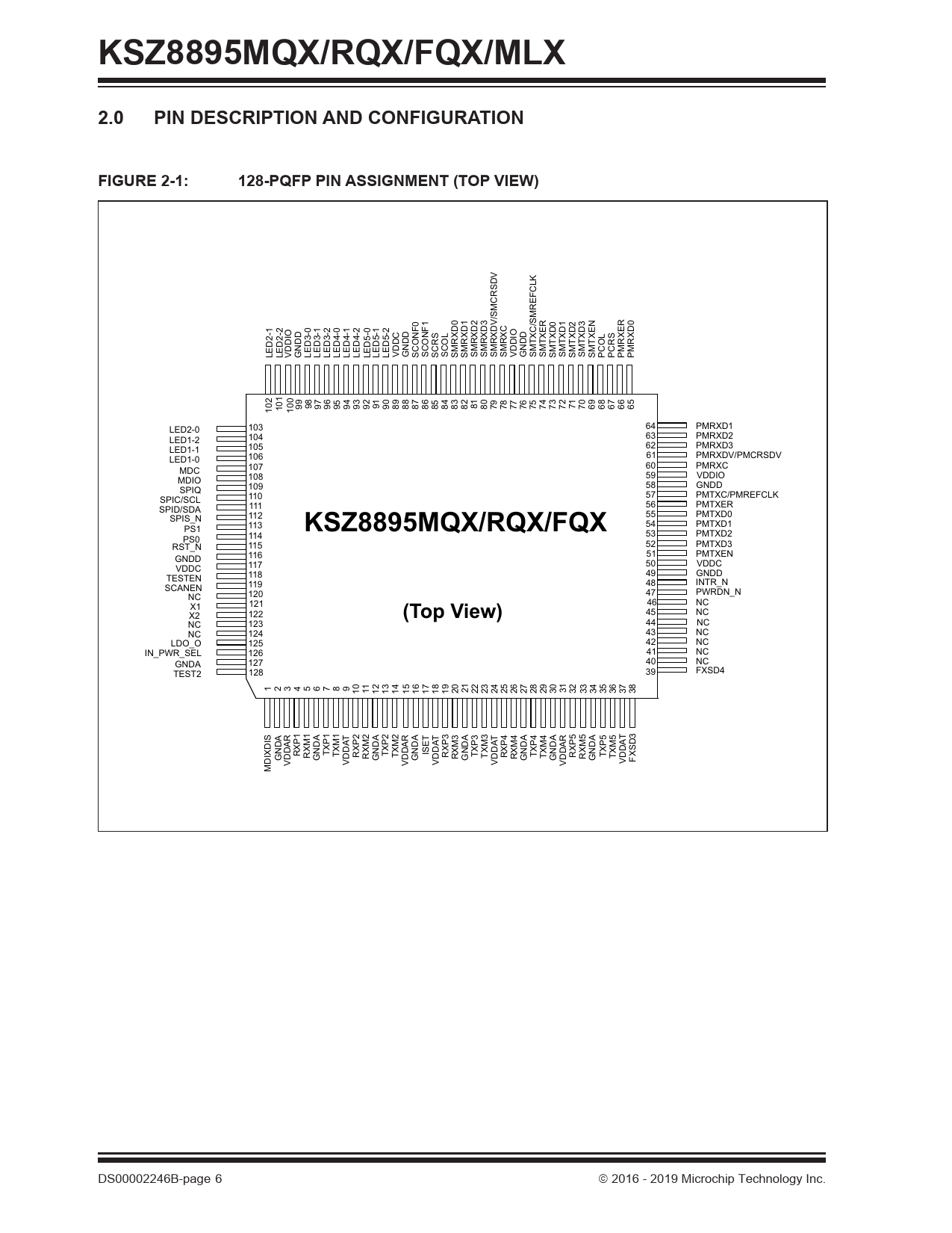 KSZ8895MQX/RQX/FQX/MLX. 2.0. PIN DESCRIPTION AND CONFIGURATION. FIGURE 2-1:. 128-PQFP PIN ASSIGNMENT (TOP VIEW)