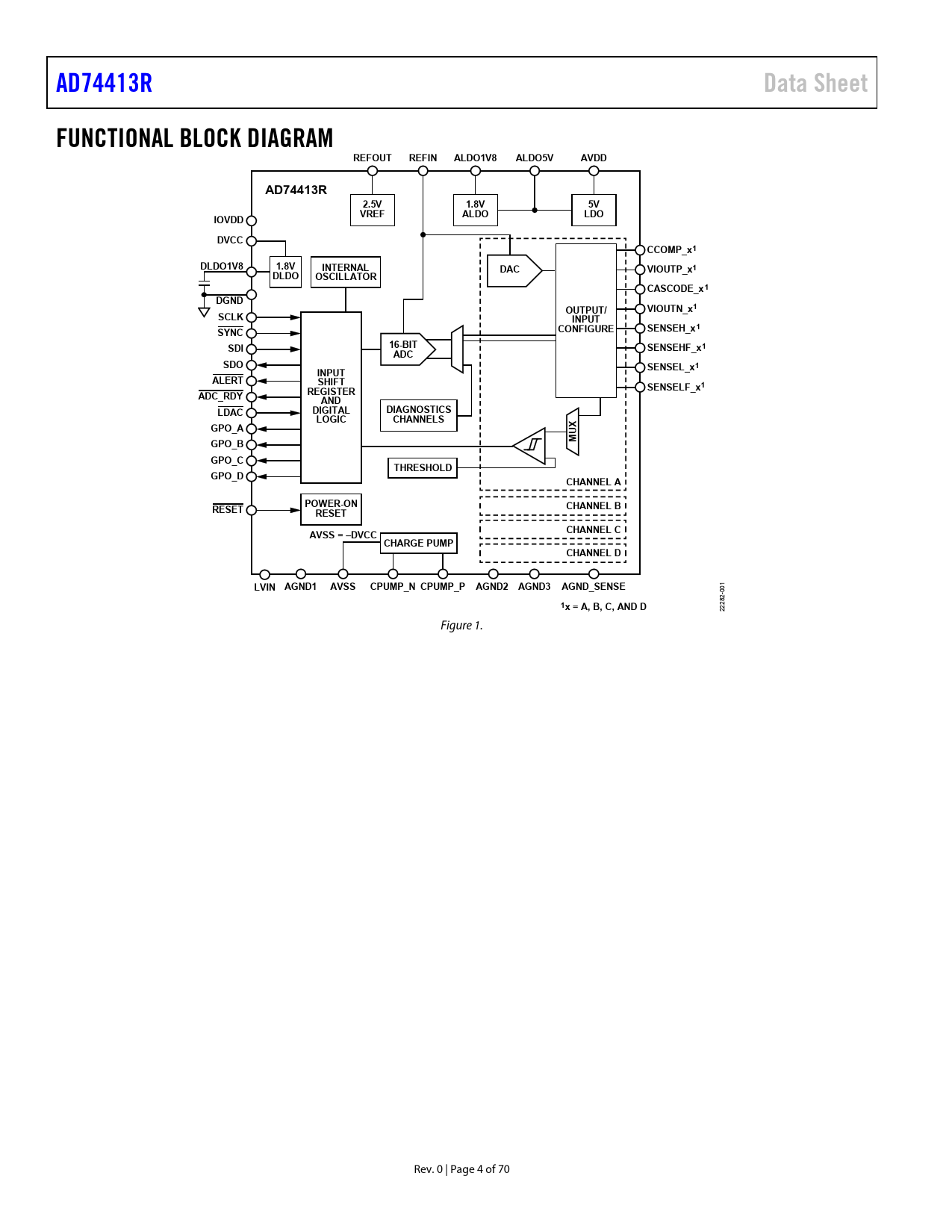 页数 / 页70 / 4 — AD74413R. Data Sheet. FUNCTIONAL BLOCK DIAGRAM. REFOUT. REFIN. ALDO1V8. …