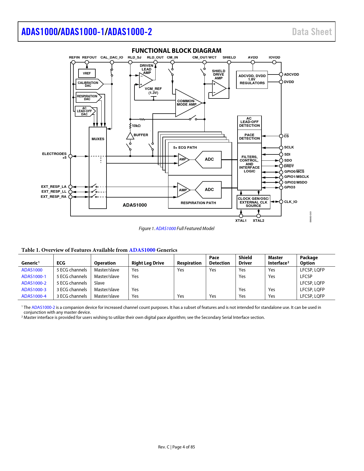 页数 / 页85 / 4 — ADAS1000/. ADAS1000-1/. ADAS1000-2. Data Sheet. FUNCTIONAL BLOCK DIAGRAM. …