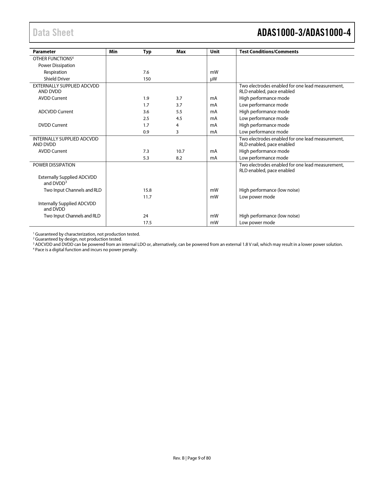 页数 / 页80 / 9 — Data Sheet. ADAS1000-3/ADAS1000-4. Parameter. Min. Typ. Max. Unit. Test …
