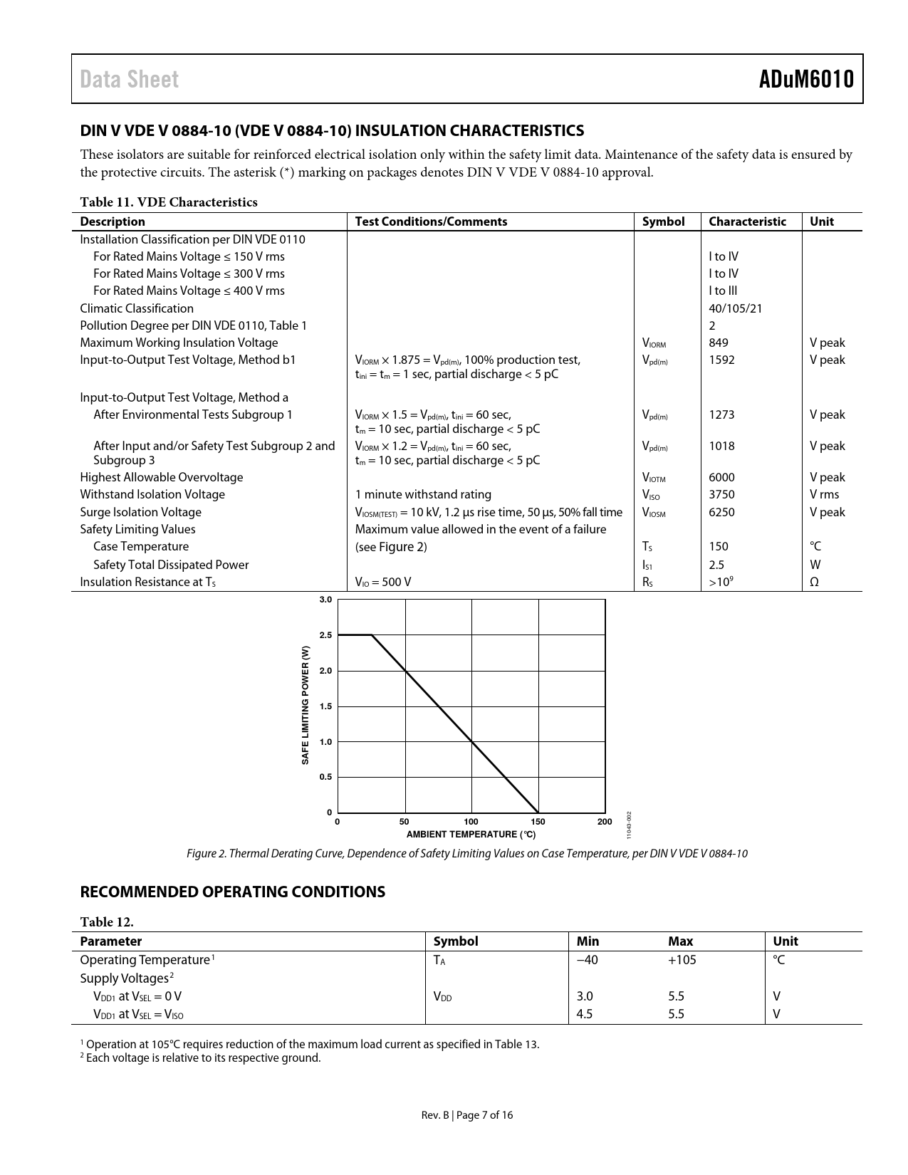 页数 / 页16 / 7 — Data Sheet. ADuM6010. DIN V VDE V 0884-10 (VDE V 0884-10) INSULATION …