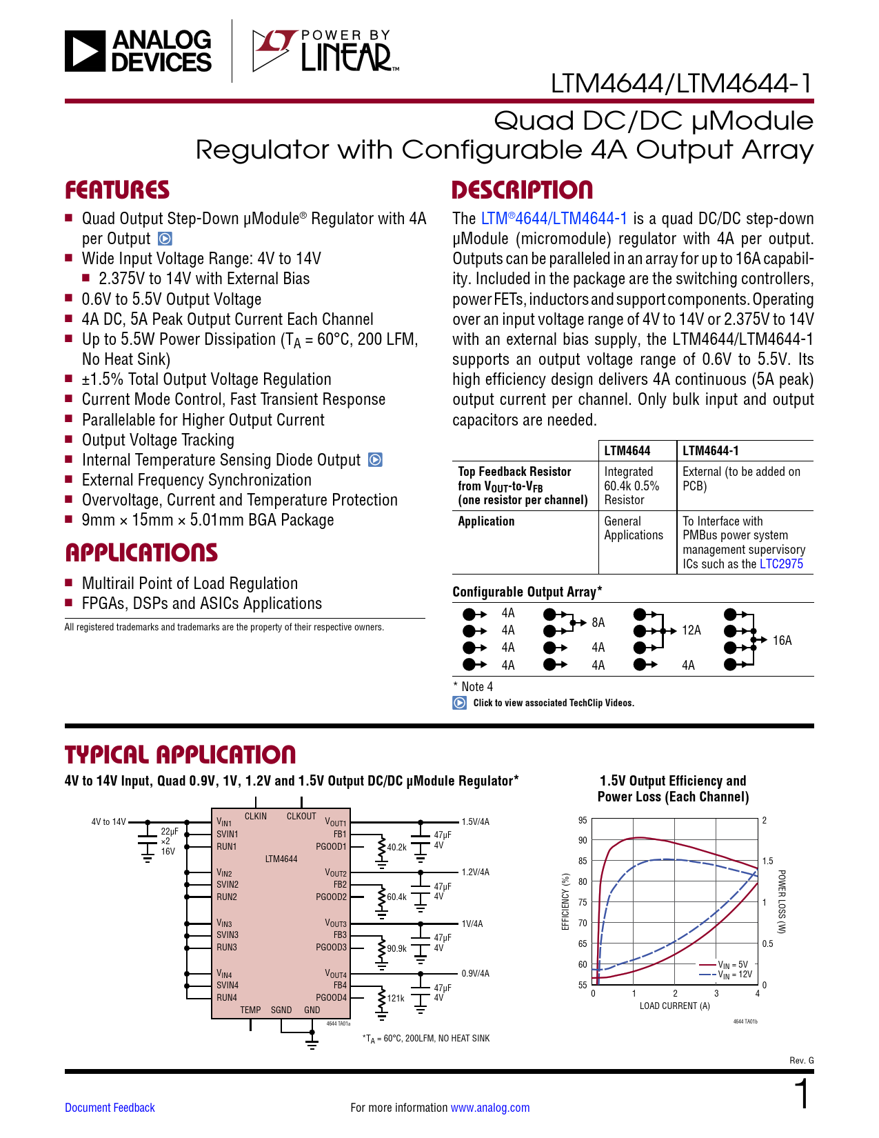 Datasheet LTM4644, LTM4644-1 Analog Devices, 修订版: G