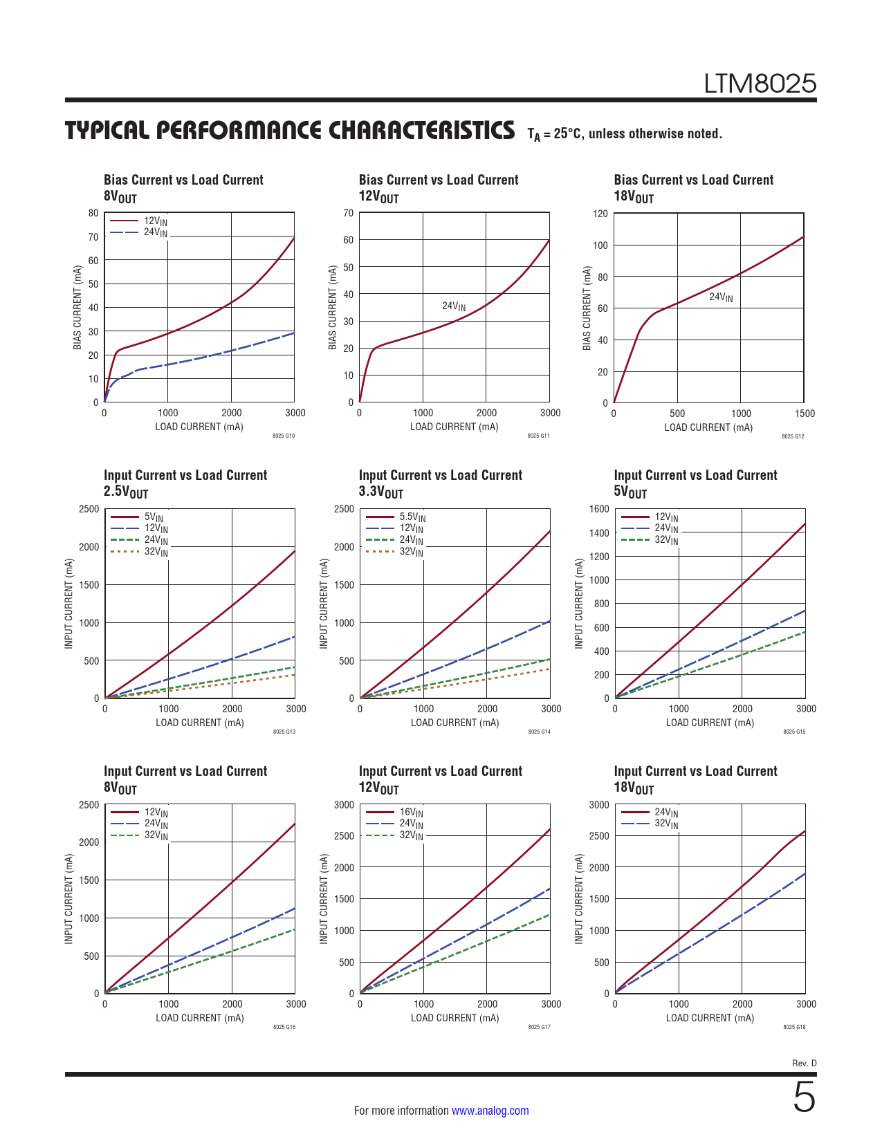 TYPICAL PERFORMANCE CHARACTERISTICS TA = 25°C, unless otherwise noted. Bias Current vs Load Current Bias Current vs Load Current Bias Current vs Load Current 8VOUT 12VOUT 18VOUT