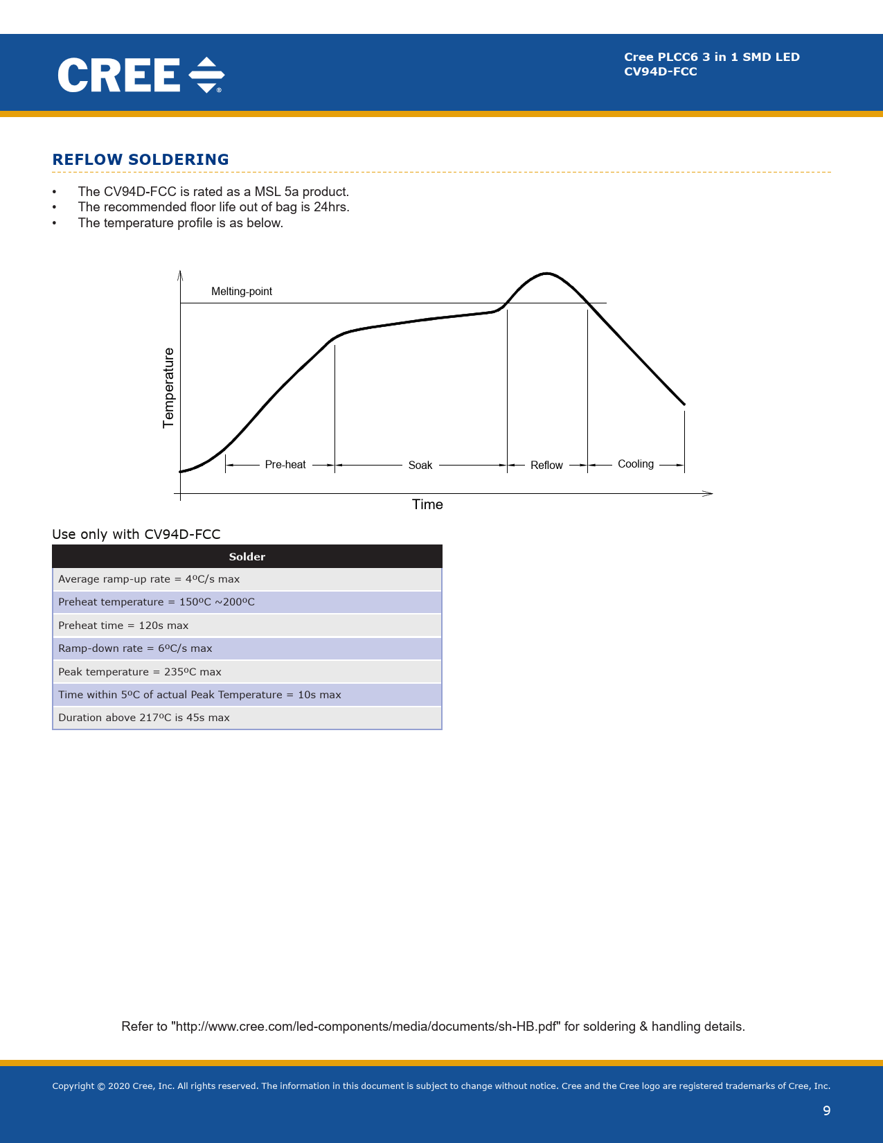 | 页数 / 页 | 11 / 9 — Cree PLCC6 3 in 1 SMD LED. CV94D-FCC. REFLOW SOLDERING. Use all SMD … |