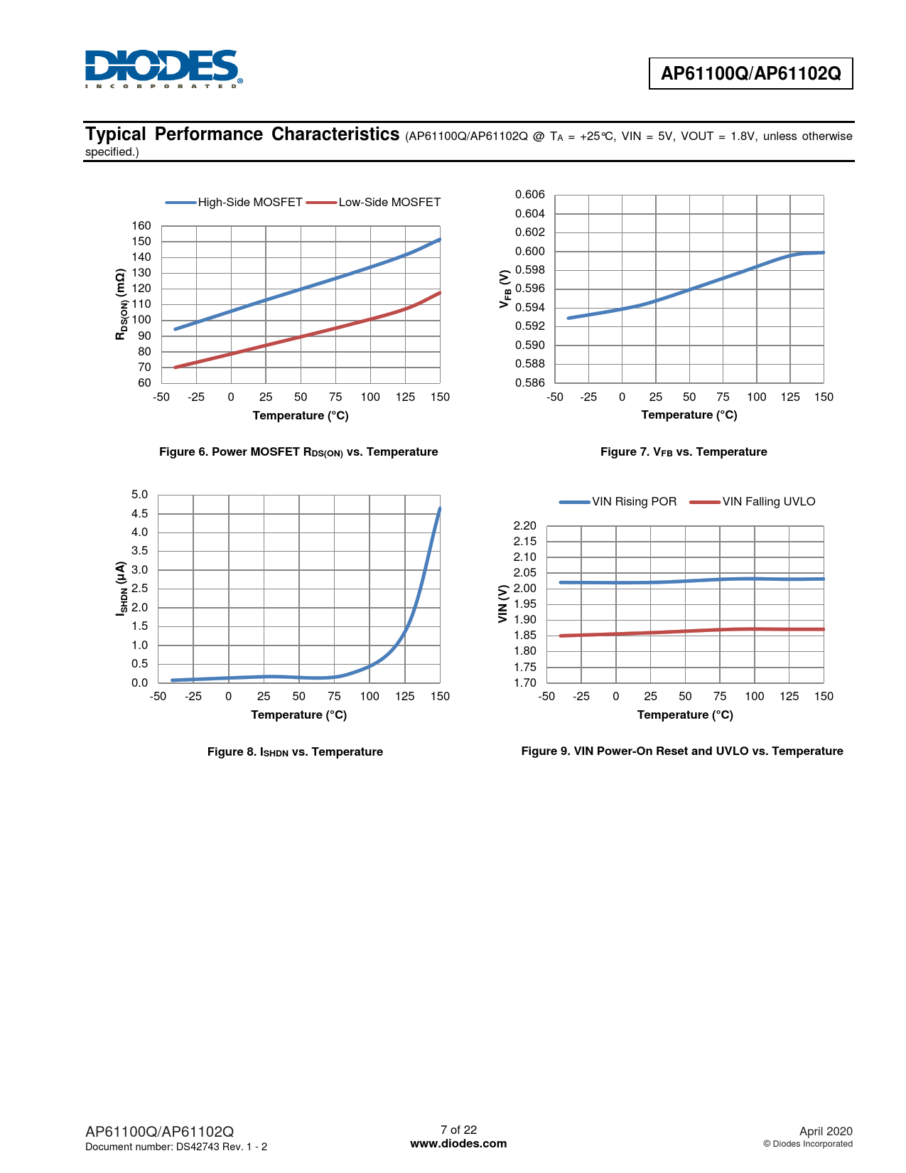 (AP61100Q/AP61102Q @ TA = +25°C, VIN = 5V, VOUT = 1.8V, unless otherwise specified.) 0.606 High-Side MOSFET Low-Side MOSFET 0.604 160 0.602 150 0.600 140 130