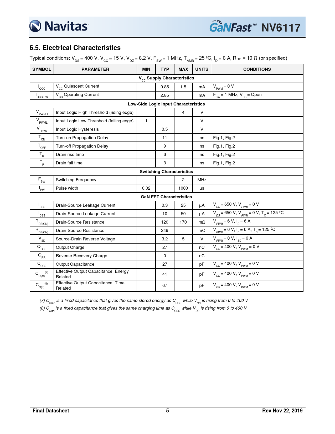 NV6117 6.5. Electrical Characteristics