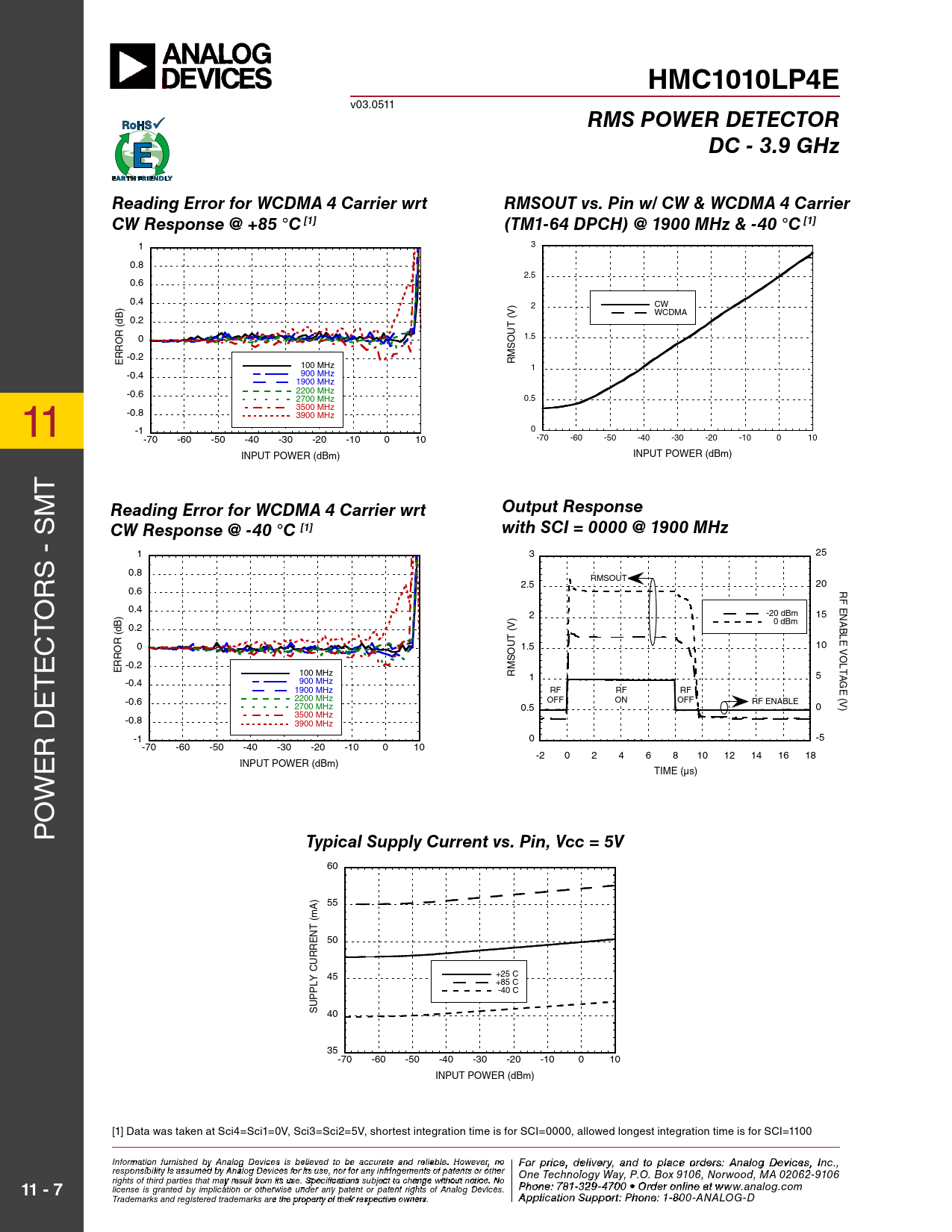 HMC1010LP4E RMS POWER DETECTOR DC - 3.9 GHz Reading Error for WCDMA 4 Carrier wrt