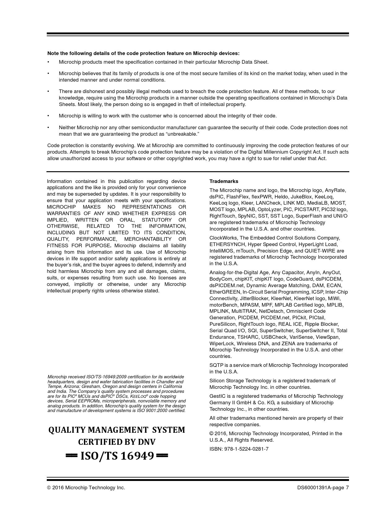 Note the following details of the code protection feature on Microchip devices:. Trademarks. QUALITY MANAGEMENT SYSTEM