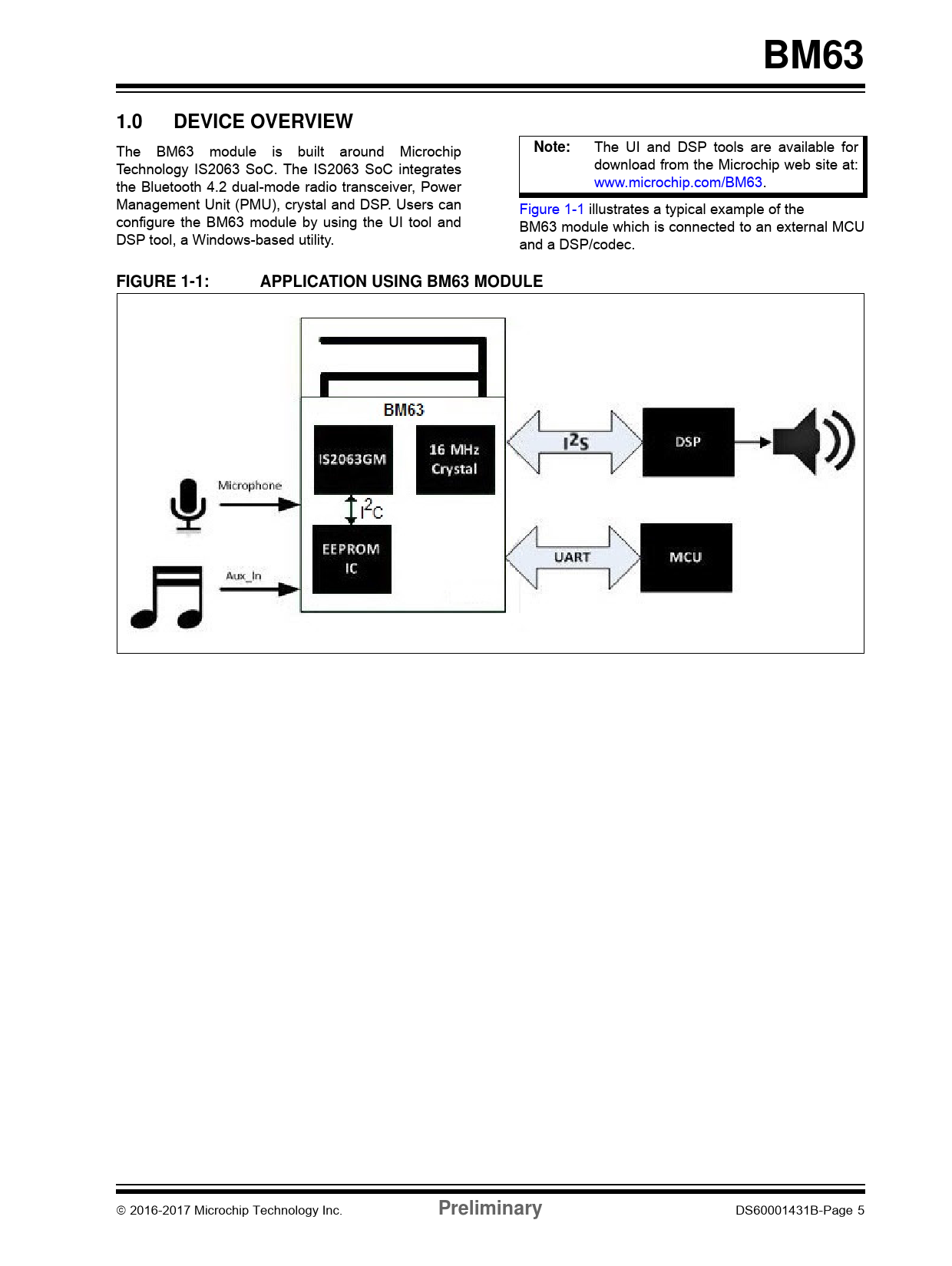 BM63. 1.0. DEVICE OVERVIEW. Note:. FIGURE 1-1:. APPLICATION USING BM63 MODULE. Preliminary