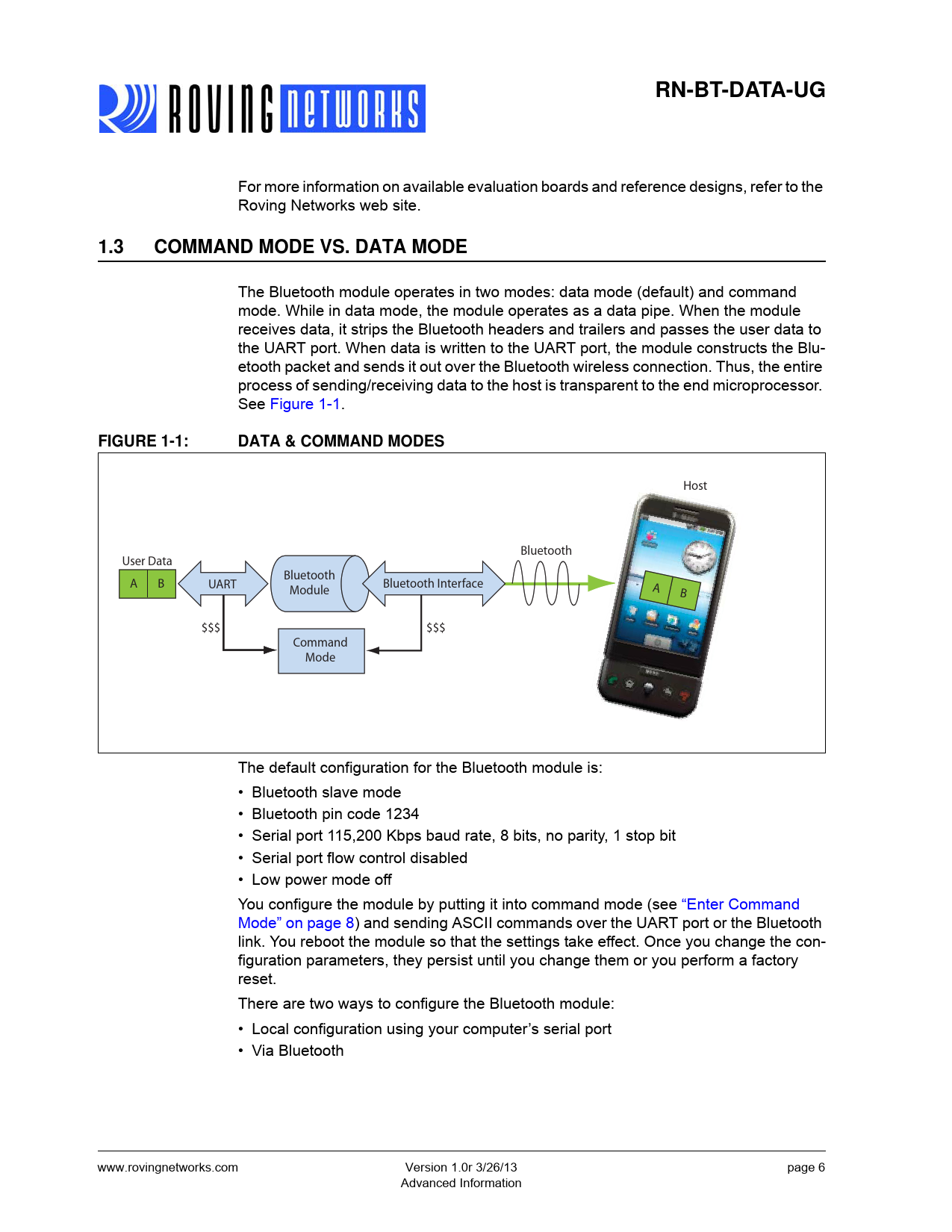 页数 / 页83 / 6 — RN-BT-DATA-UG. 1.3. COMMAND MODE VS. DATA MODE. FIGURE 1-1:. DATA & …