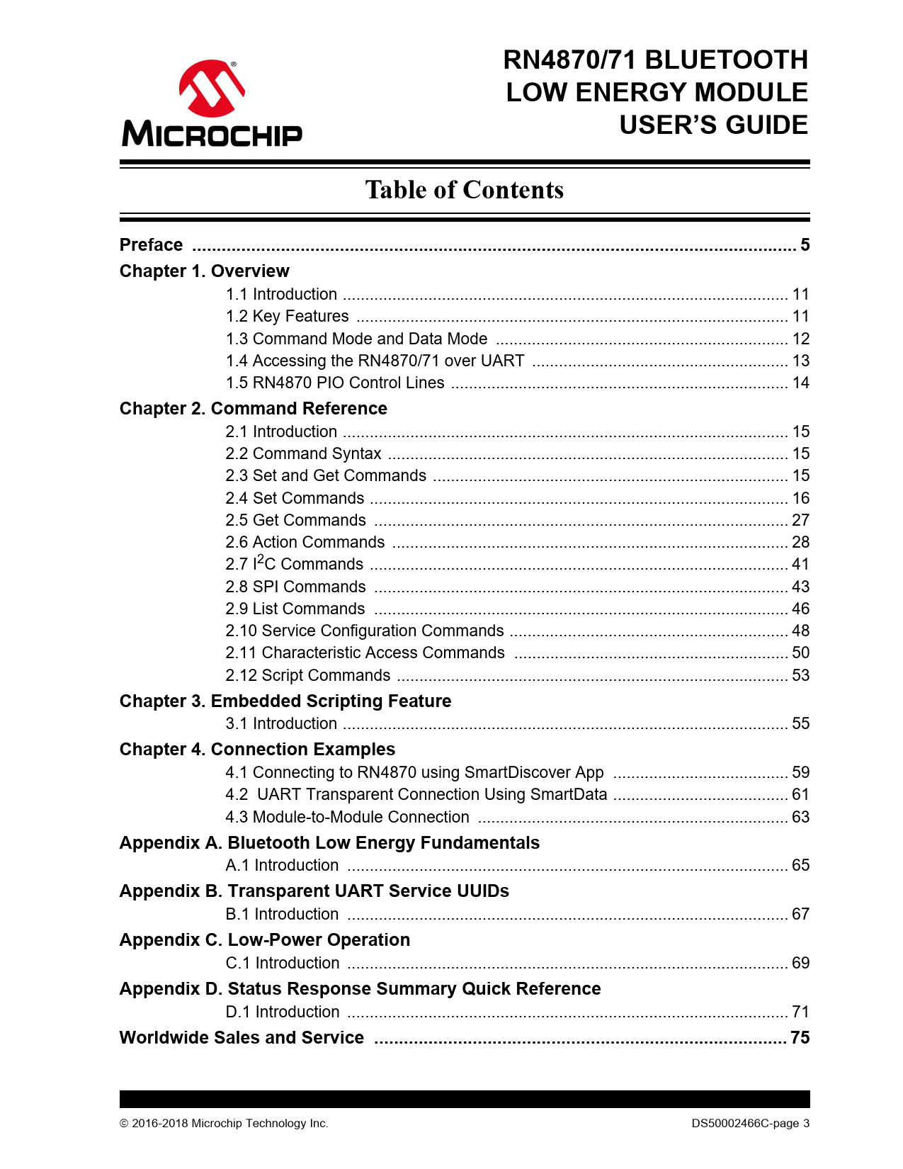 页数 / 页75 / 3 — RN4870/71 BLUETOOTH. LOW ENERGY MODULE. USER’S GUIDE. Table of Contents. …