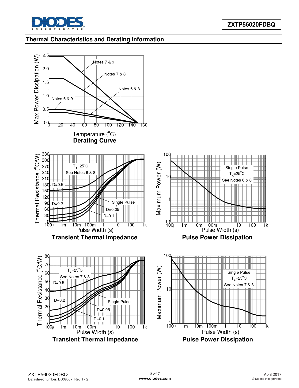 | 页数 / 页 | 7 / 3 — ZXTP56020FDBQ. Thermal Characteristics and Derating Information. Derating … |