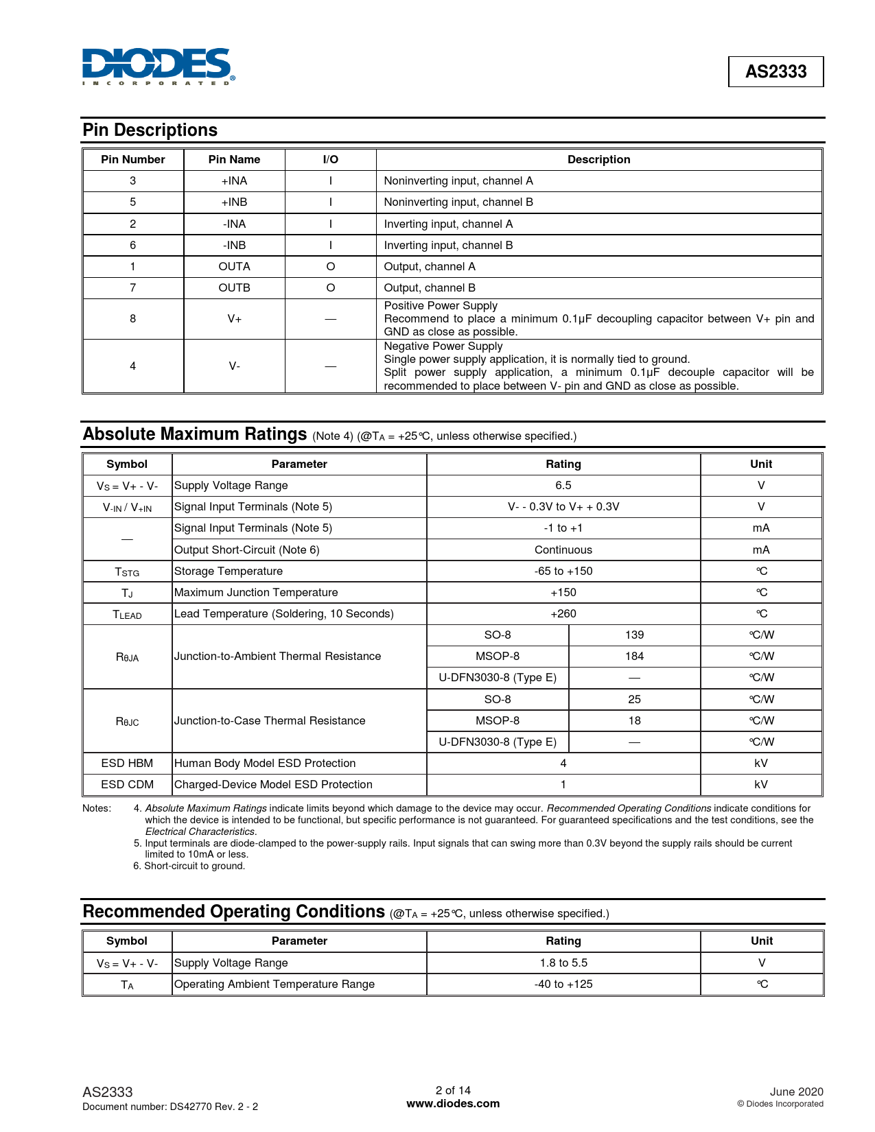 Datasheet AS2333 (Diodes) - 2