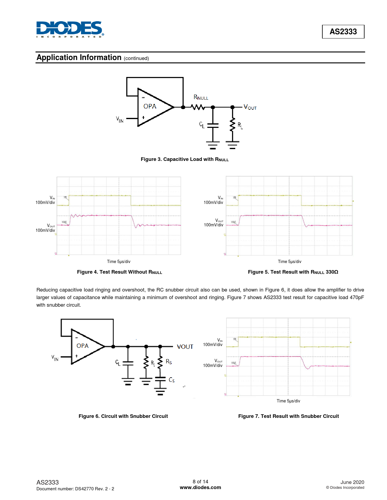 | 页数 / 页 | 14 / 8 — AS2333. Application Information. Figure 3. Capacitive Load with RNULL |