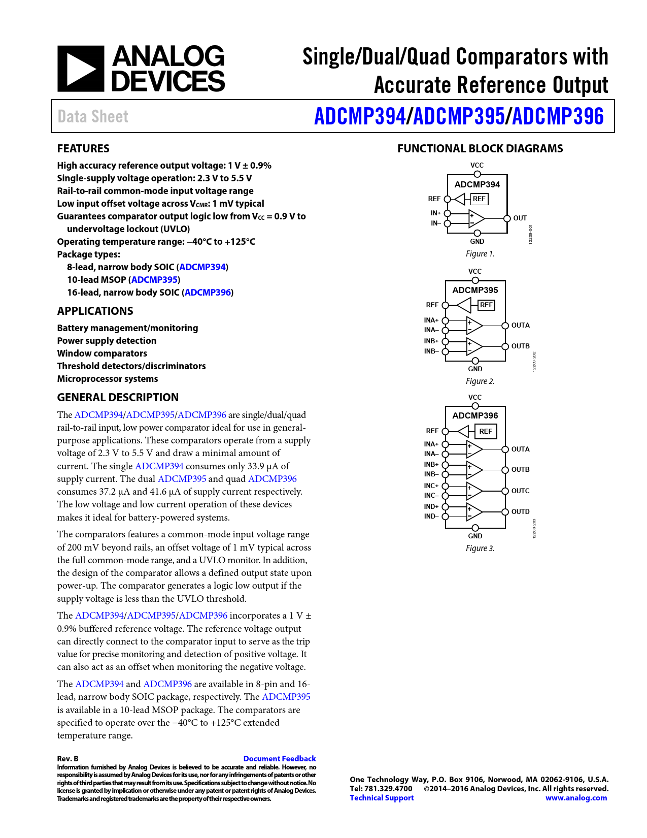 Single/Dual/Quad Comparators with. Accurate Reference Output. Data Sheet. ADCMP394. /ADCMP395. /ADCMP396. FEATURES