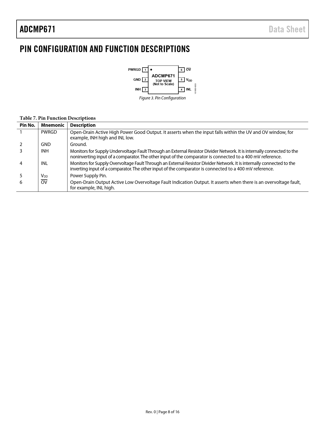 页数 / 页16 / 8 — ADCMP671. Data Sheet. PIN CONFIGURATION AND FUNCTION DESCRIPTIONS. PWRGD. …