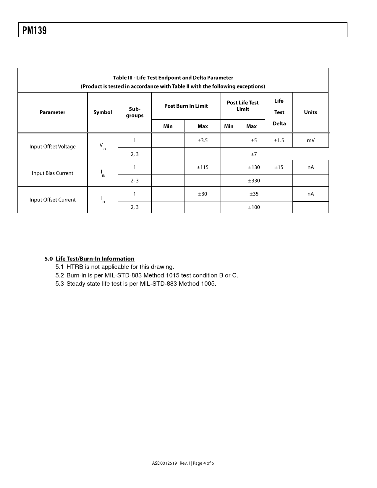 5.1. HTRB. is. not. applicable. for. this. drawing. 5.2. Burn-in. is. per. MIL-STD-883. Method. 1015. test. condition. B. or. C. 5.3. Steady. state. life. test. is. per