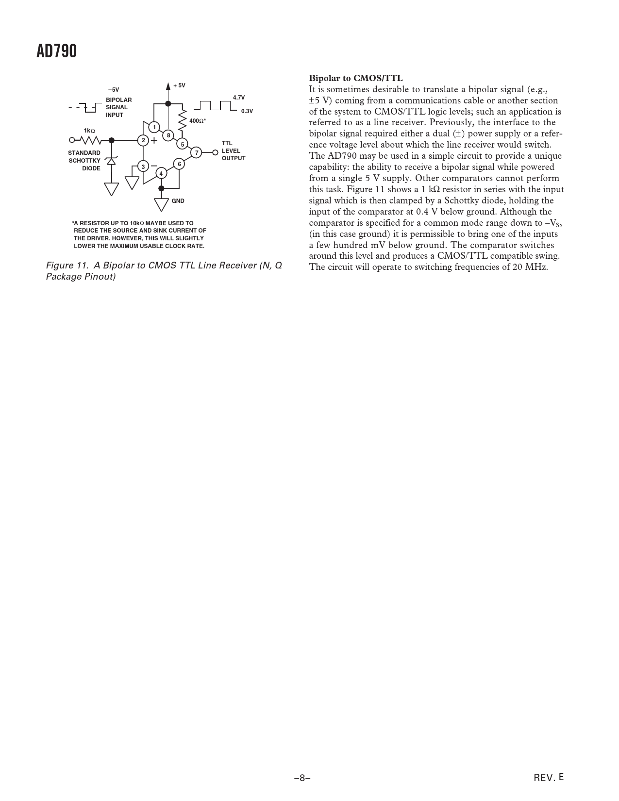 页数 / 页10 / 8 — AD790. Bipolar to CMOS/TTL. + 5V. – 5V. BIPOLAR. 4.7V. SIGNAL. 0.3V. …