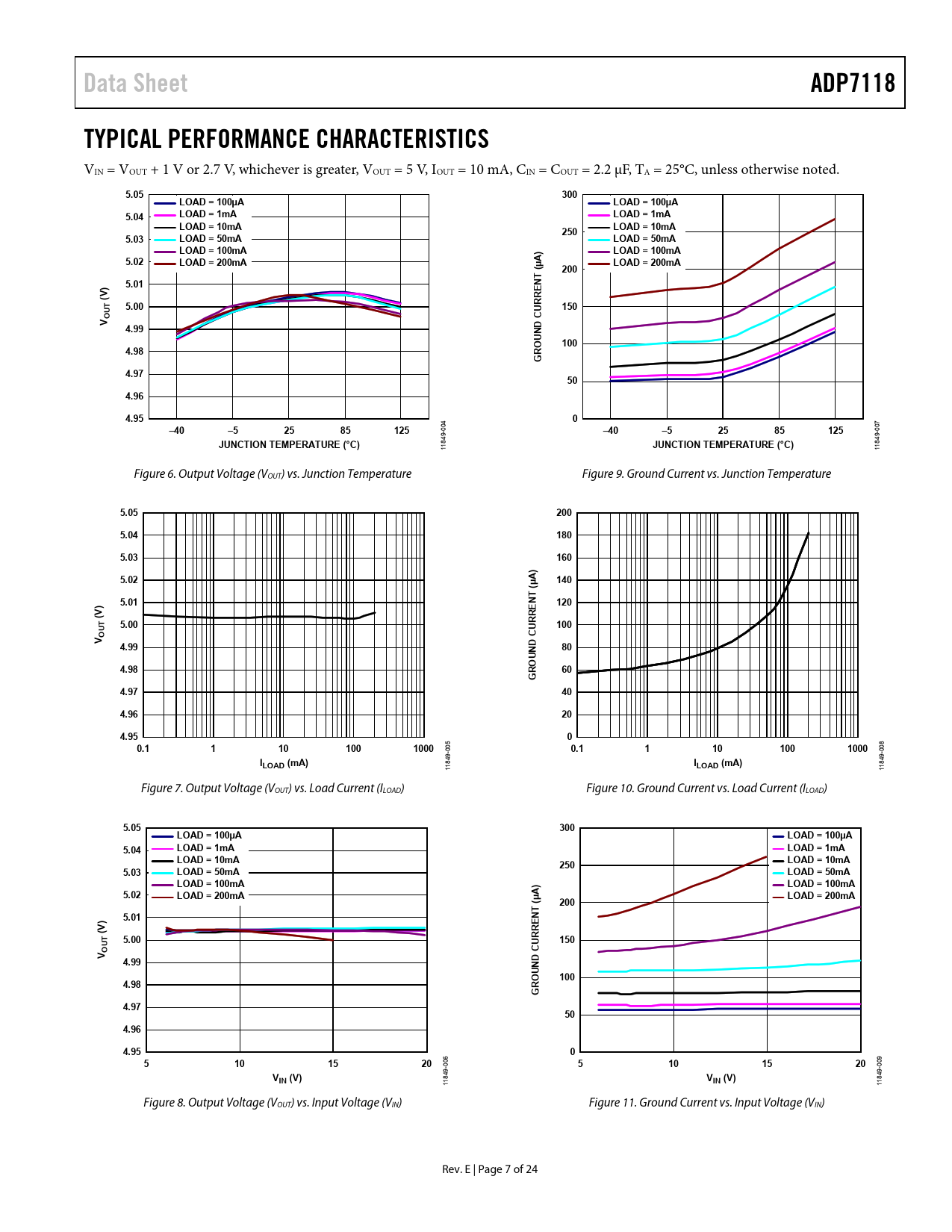 Data Sheet. ADP7118. TYPICAL PERFORMANCE CHARACTERISTICS. 5.05. 300. LOAD = 100µA. 5.04. LOAD = 1mA. LOAD = 10mA. 250. 5.03. LOAD = 50mA
