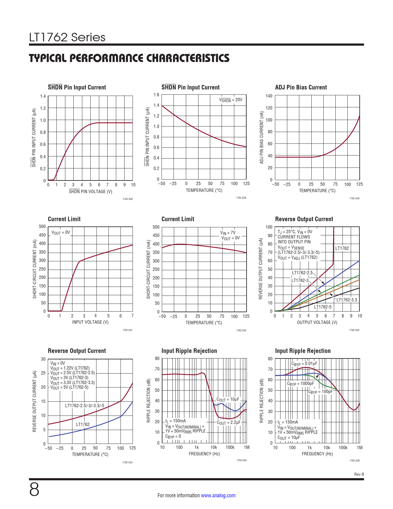 | 页数 / 页 | 18 / 8 — TYPICAL PERFORMANCE CHARACTERISTICS. SHDN Pin Input Current. ADJ Pin Bias … |