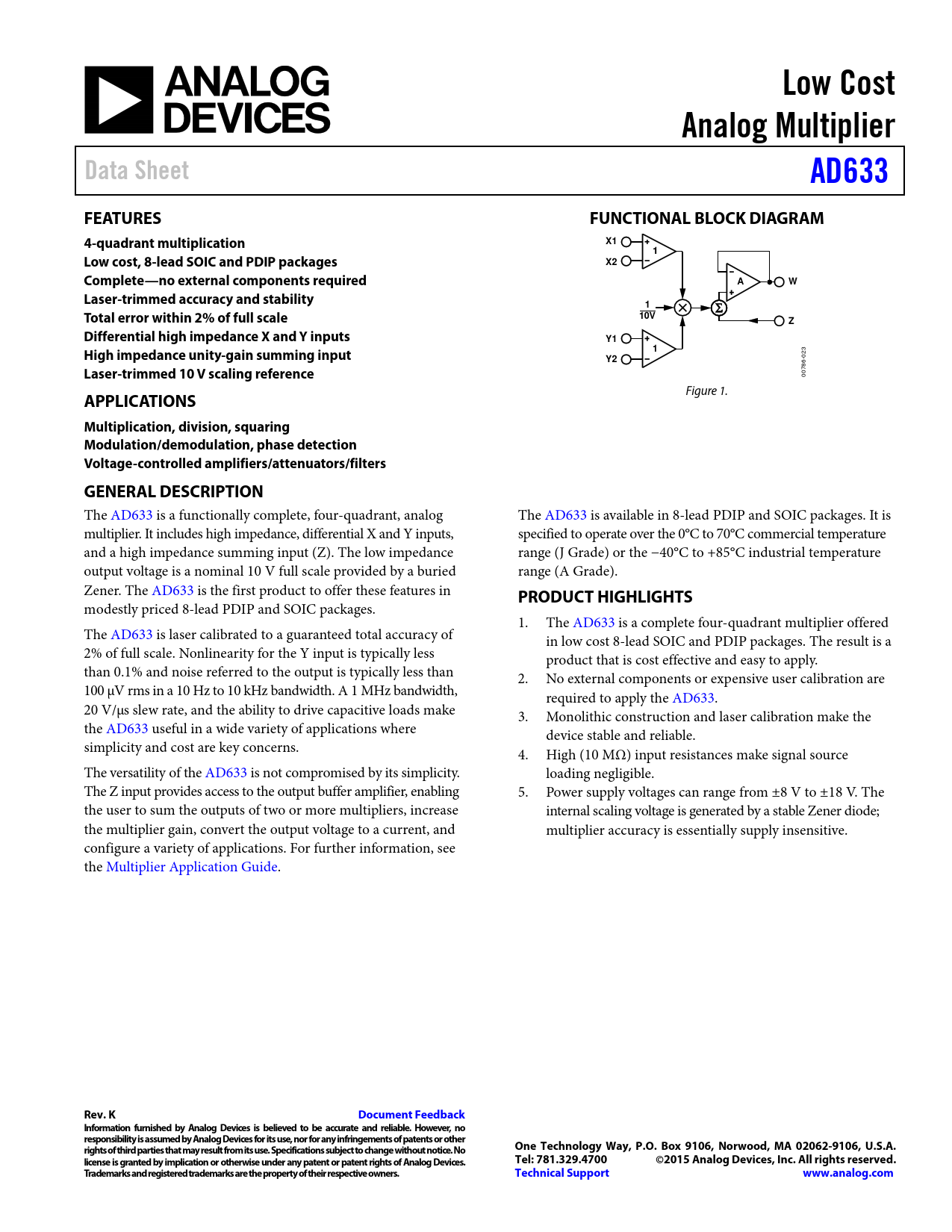 Datasheet AD633 (Analog Devices)