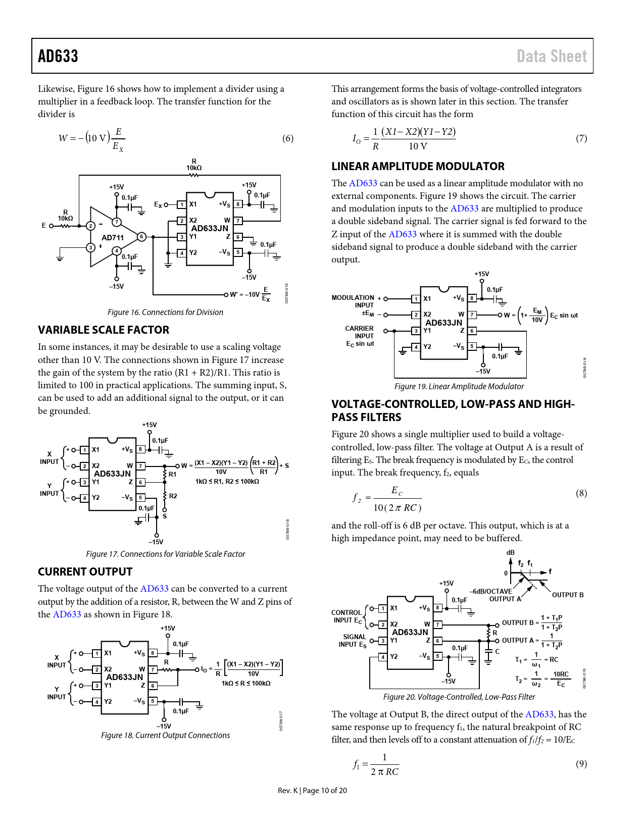 页数 / 页20 / 10 — AD633. Data Sheet. 10kΩ. LINEAR AMPLITUDE MODULATOR. +15V. 0.1µF. W 7. …