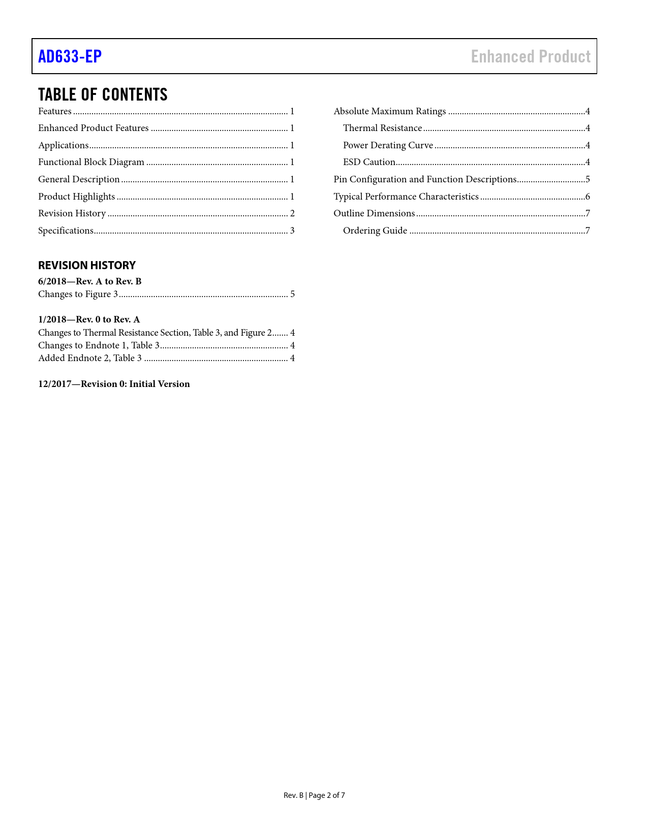 页数 / 页7 / 2 — AD633-EP. Enhanced Product. TABLE OF CONTENTS. REVISION HISTORY. …