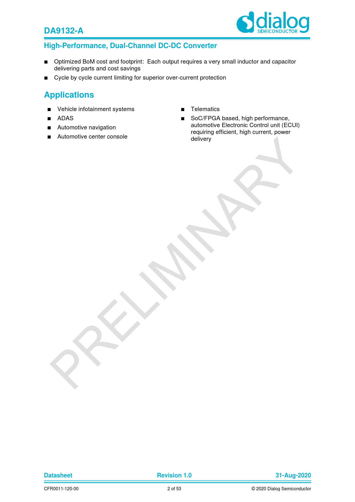| 页数 / 页 | 53 / 2 — DA9132-A. High-Performance, Dual-Channel DC-DC Converter. Applications. … |