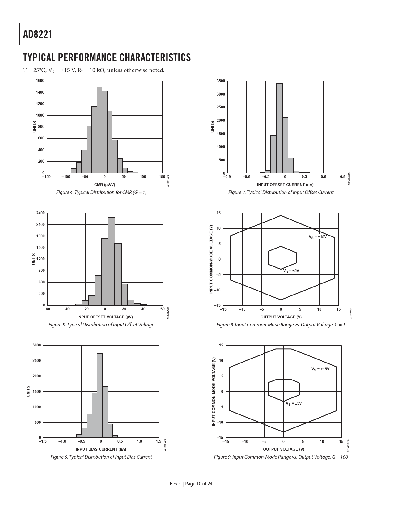 0 Figure 6. Typical Distribution of Input Bias Current Figure 9. Input Common-Mode Range vs. Output Voltage, G = 100 Rev. C | Page 10 of 24