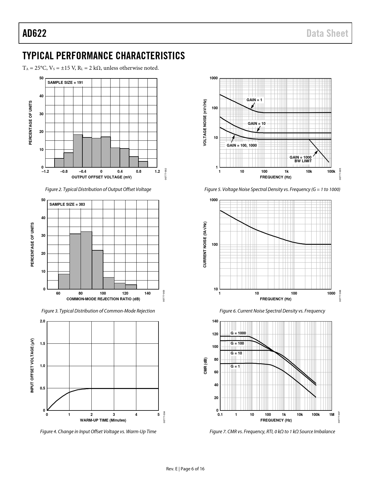 00777- 00777- Figure 2. Typical Distribution of Output Offset Voltage Figure 5. Voltage Noise Spectral Density vs. Frequency (G = 1 to 1000)