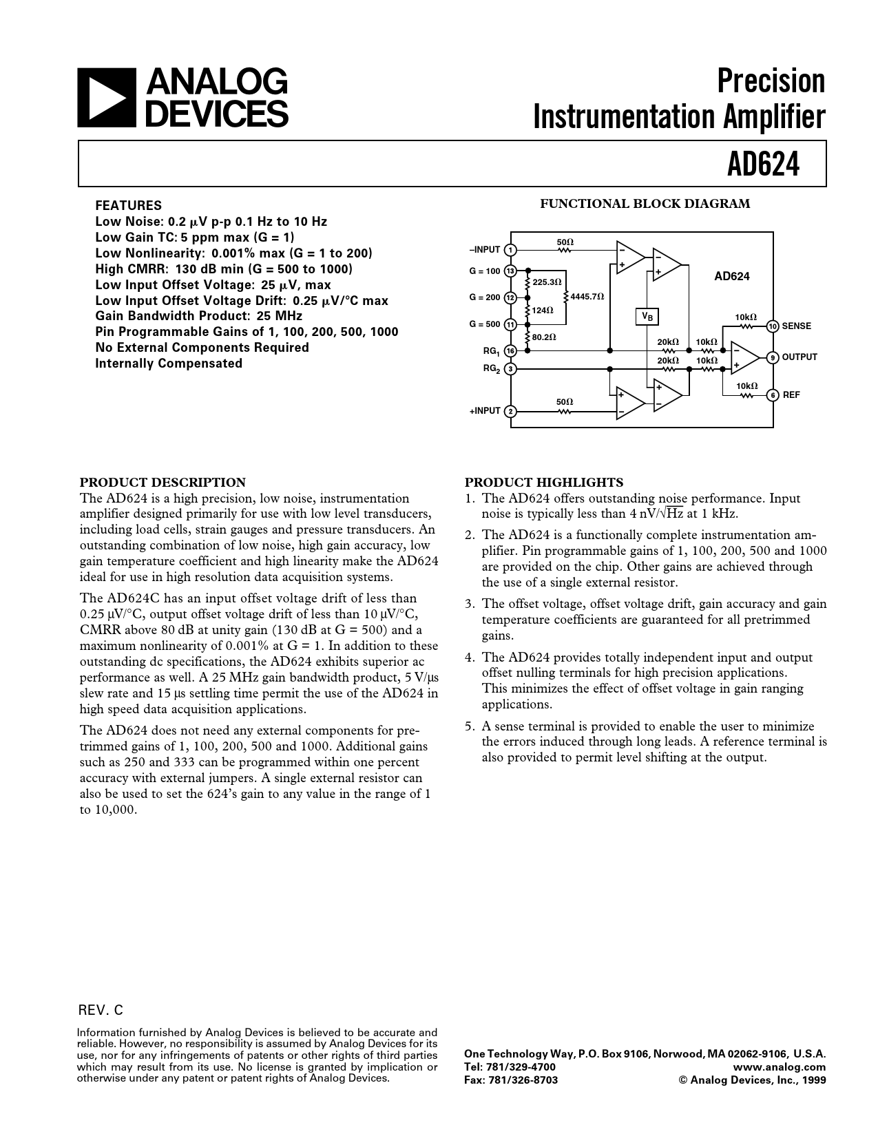 Fax: 781/326-8703 © Analog Devices, Inc., 1999