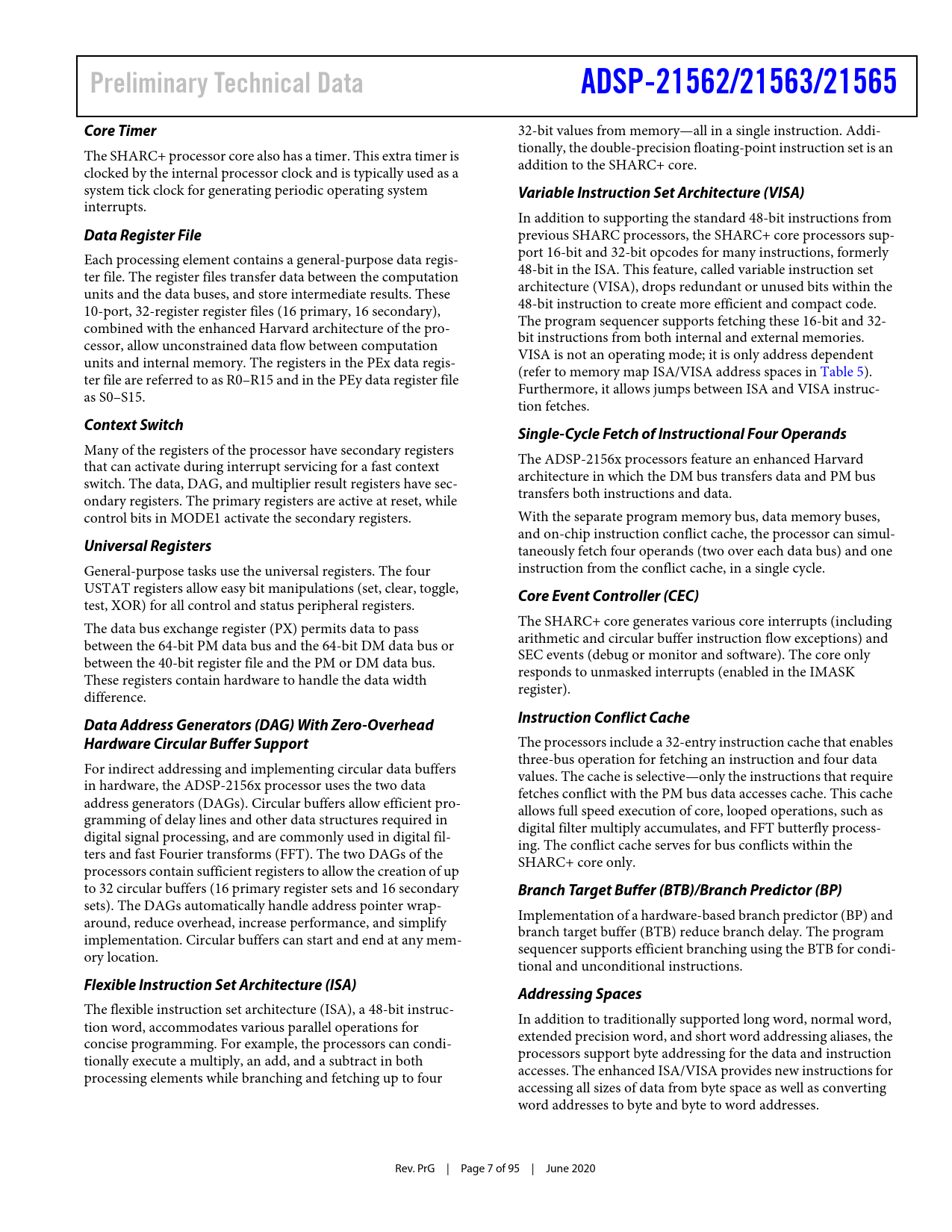 Preliminary Technical Data ADSP-21562/21563/21565 Core Timer Variable Instruction Set Architecture (VISA)