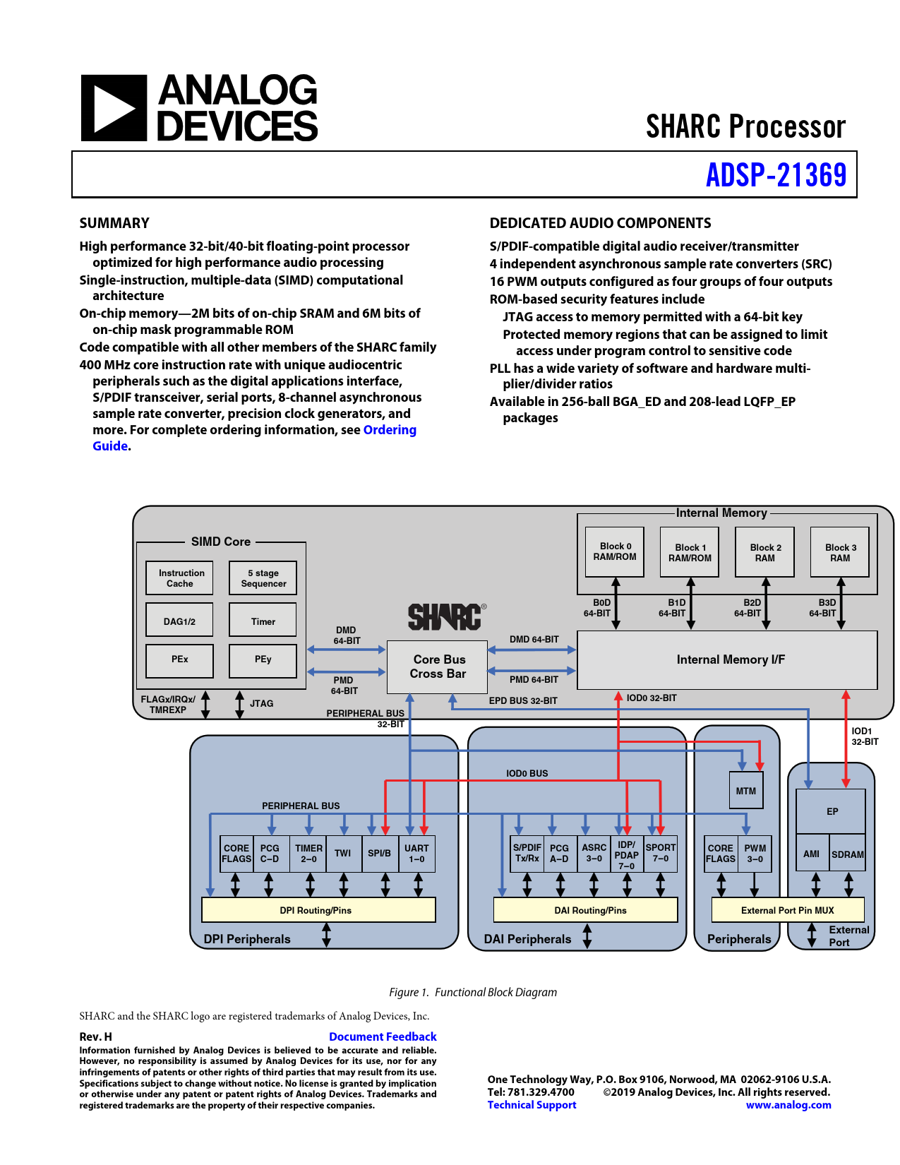 Figure 1. Functional Block Diagram SHARC and the SHARC logo are registered trademarks of Analog Devices, Inc.