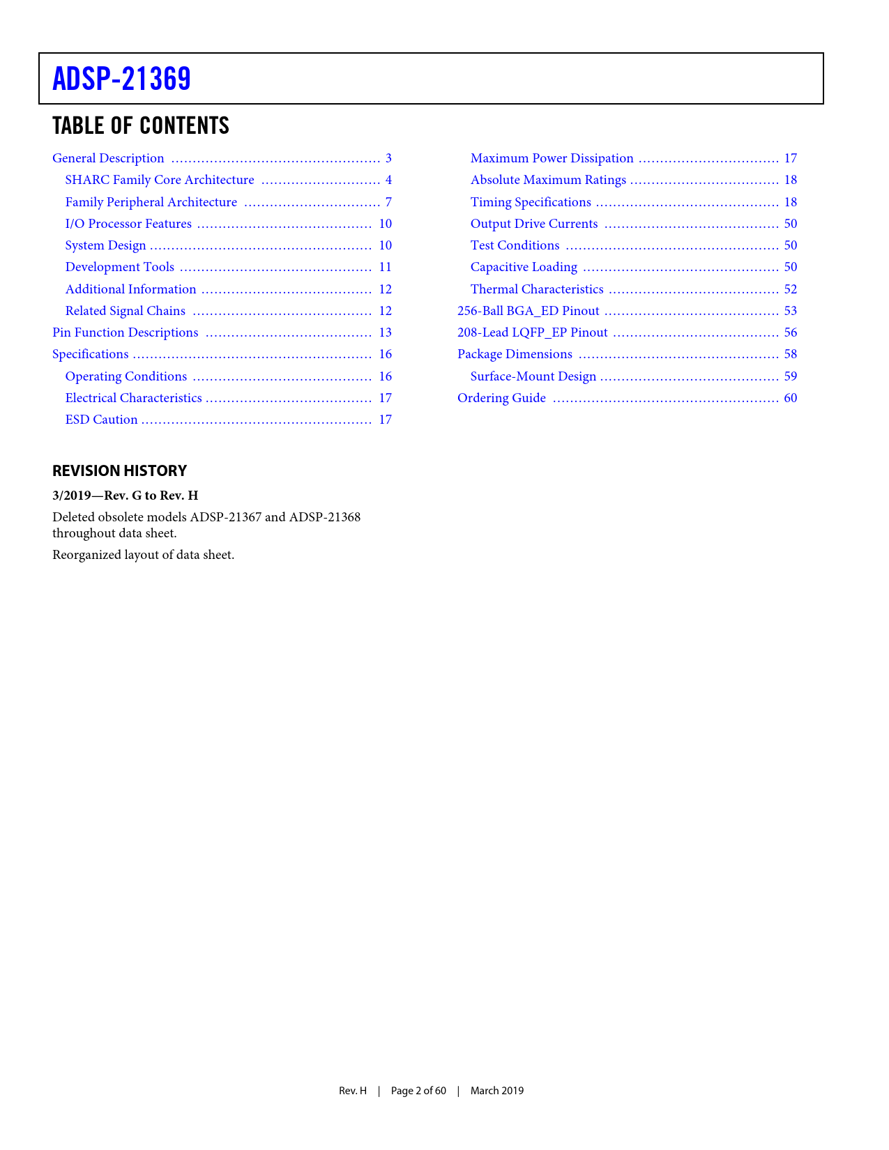 页数 / 页60 / 2 — ADSP-21369. TABLE OF CONTENTS. REVISION HISTORY. 3/2019—Rev. G to Rev. H