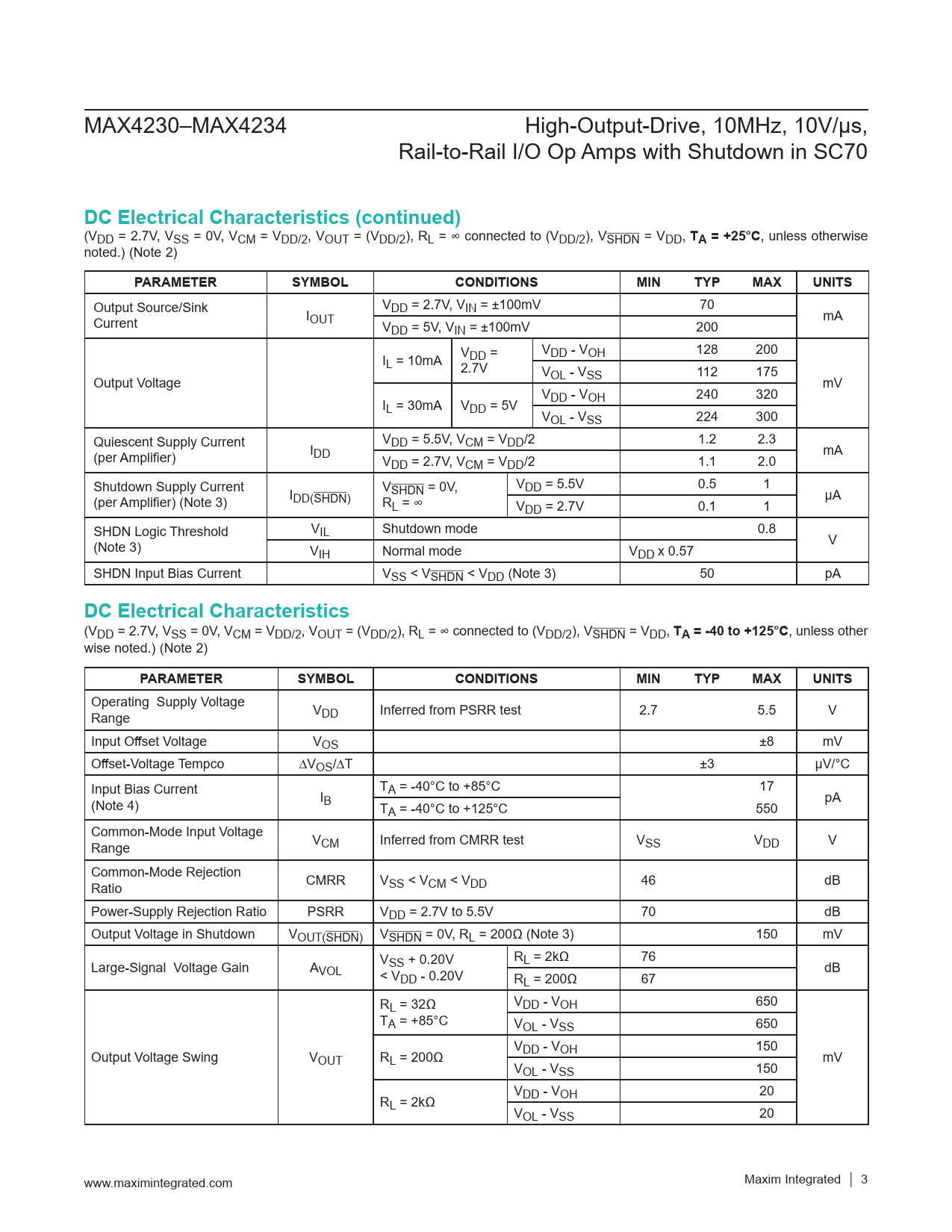 Datasheet MAX4230, MAX4231, MAX4232, MAX4233, MAX4234 (Maxim) - 3
