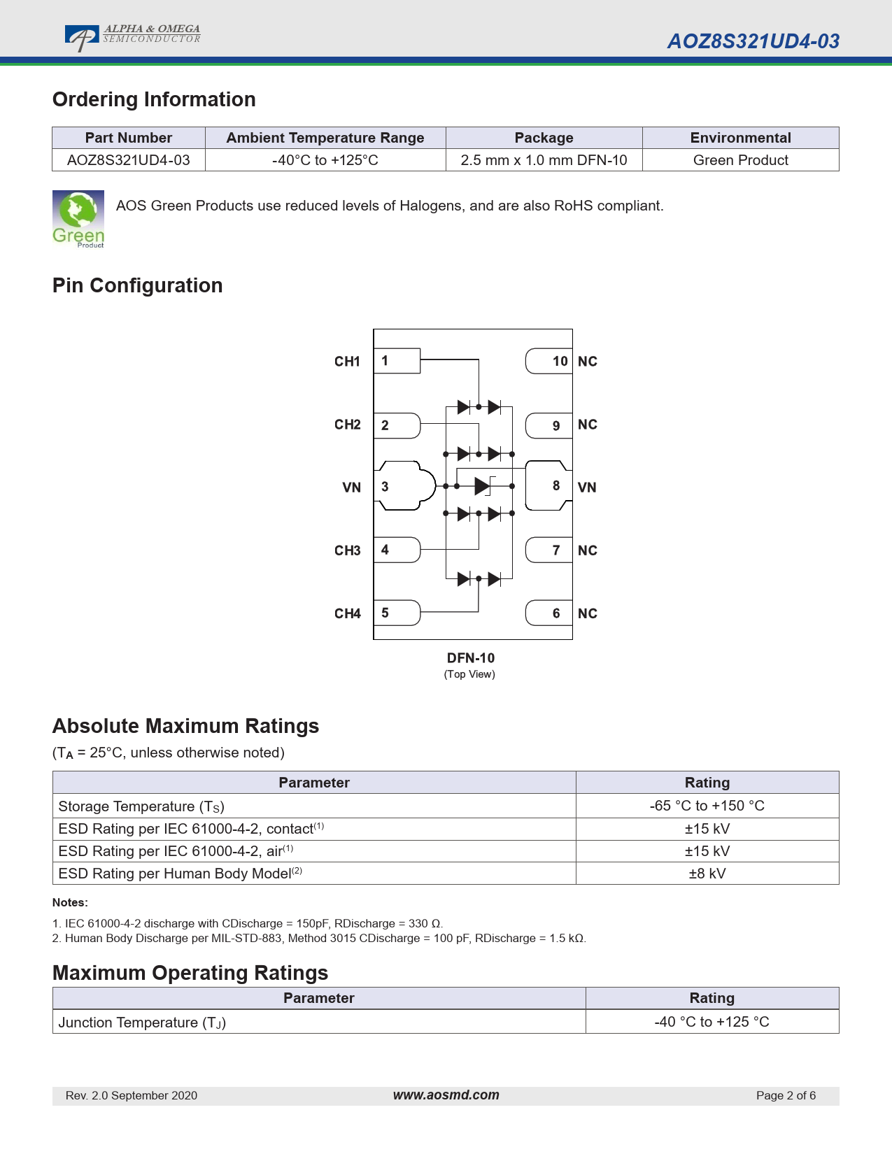 页数 / 页6 / 2 — ALPHA & OMEGA. AOZ8S321UD4-03. Ordering Information. Part Number. …