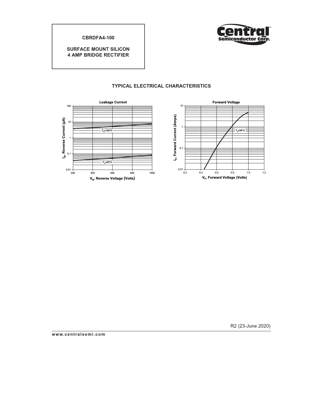CBRDFA4-100. SURFACE MOUNT SILICON. 4 AMP BRIDGE RECTIFIER. TYPICAL ELECTRICAL CHARACTERISTICS