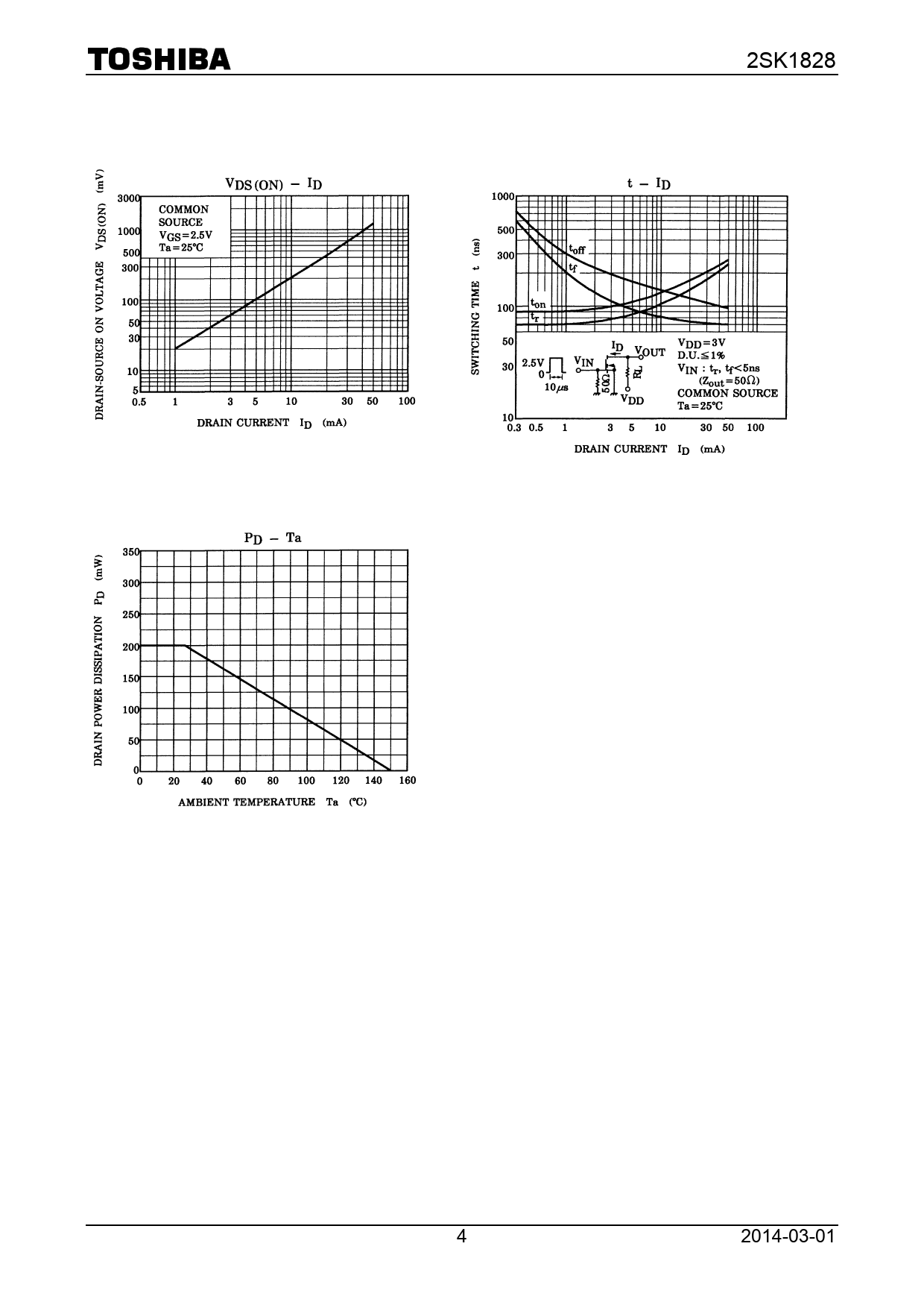 页数 / 页5 / 4 — 2SK1828. 4. 2014-03-01. Document. Outline. TOSHIBA. Field. Effect. …