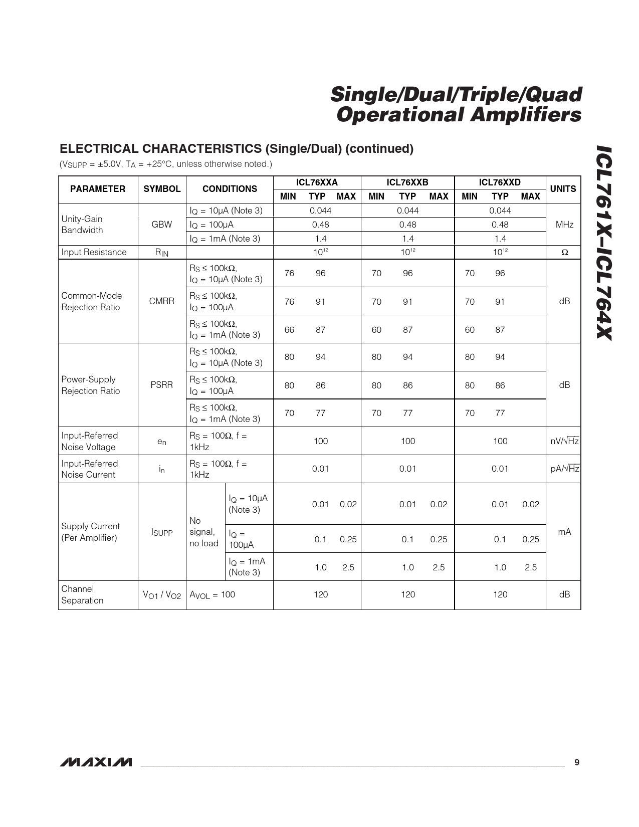 | 页数 / 页 | 26 / 9 — Single/Dual/Triple/Quad. Operational Amplifiers. ICL761X–ICL764X. … |