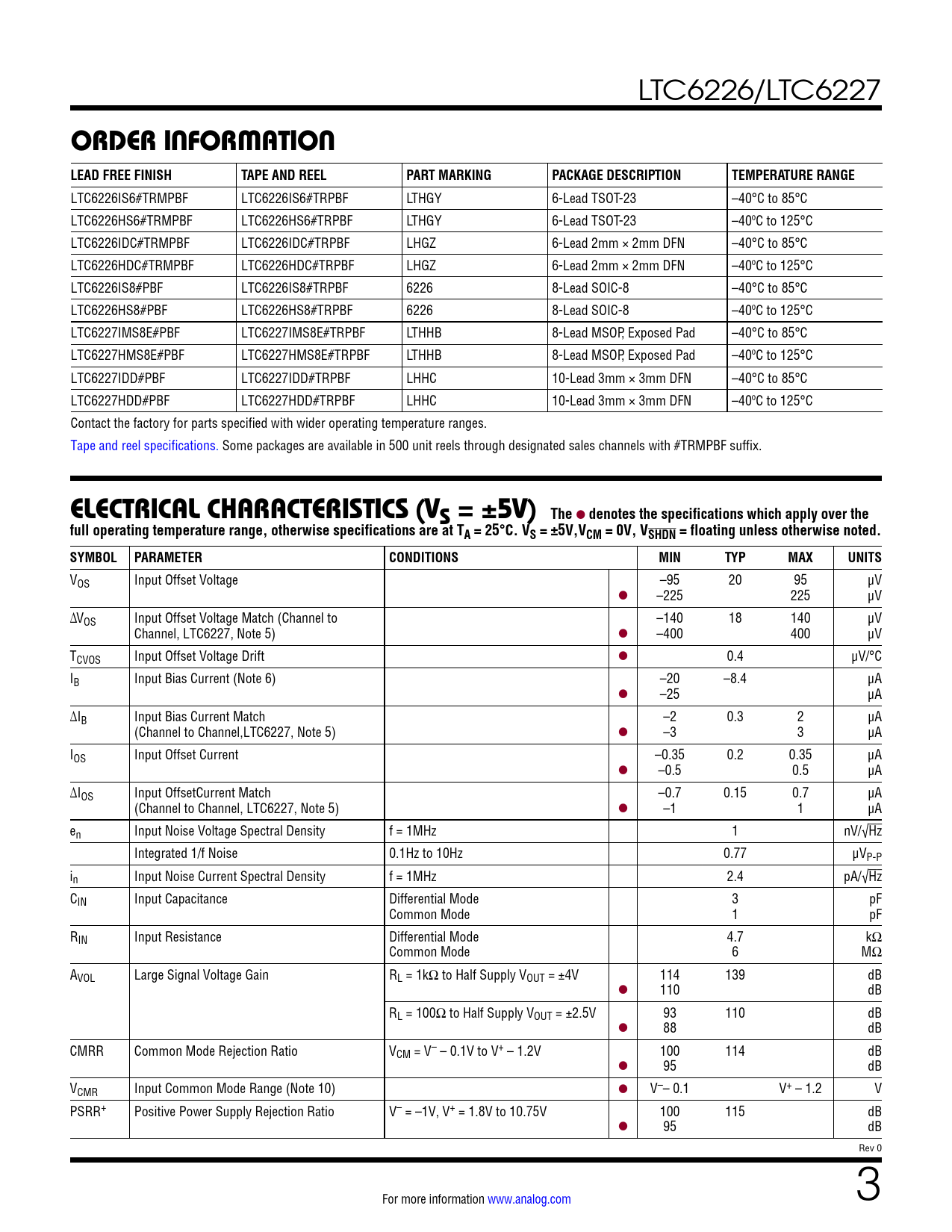 Datasheet LTC6226, LTC6227 (Analog Devices) - 3
