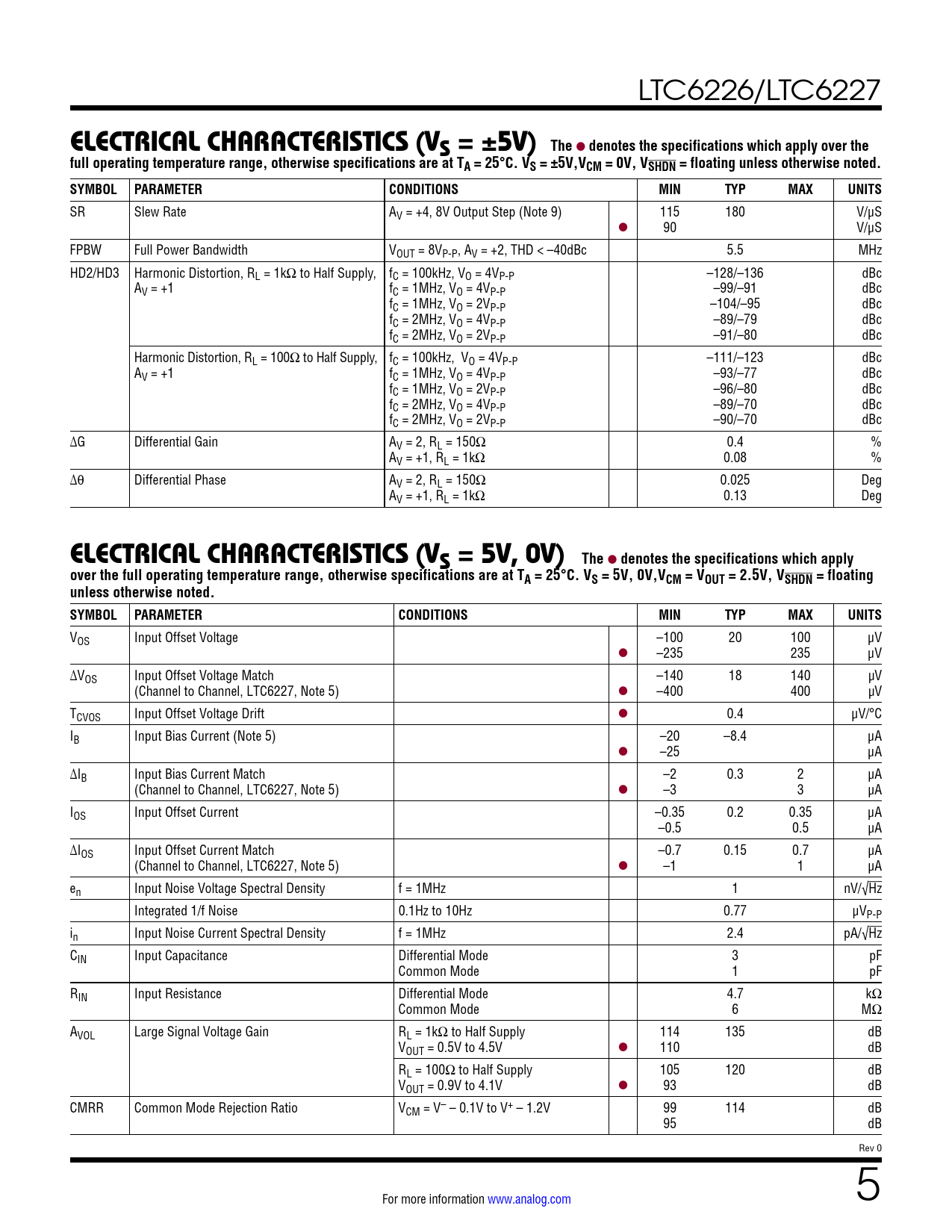 Datasheet LTC6226, LTC6227 (Analog Devices) - 5
