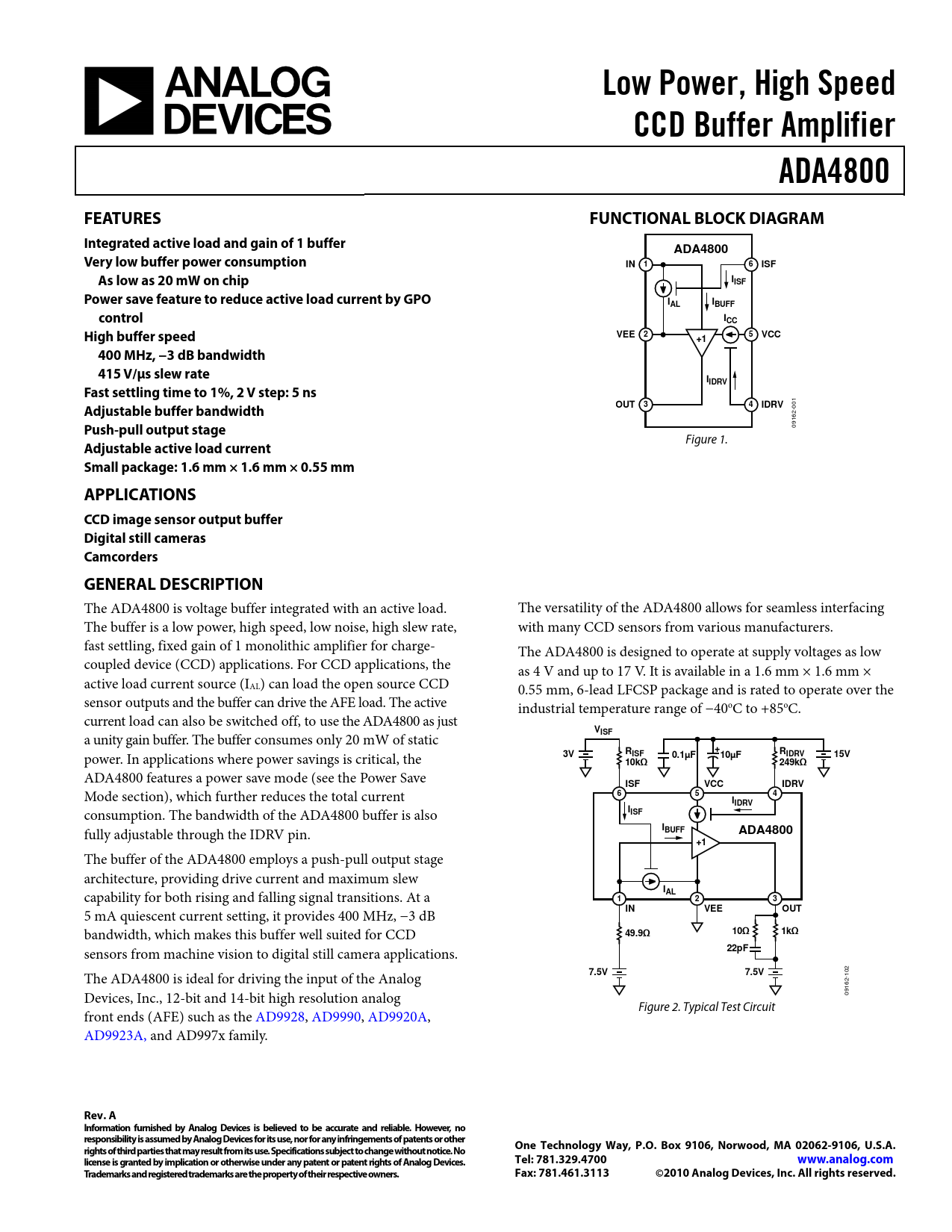 Datasheet ADA4800 (Analog Devices)