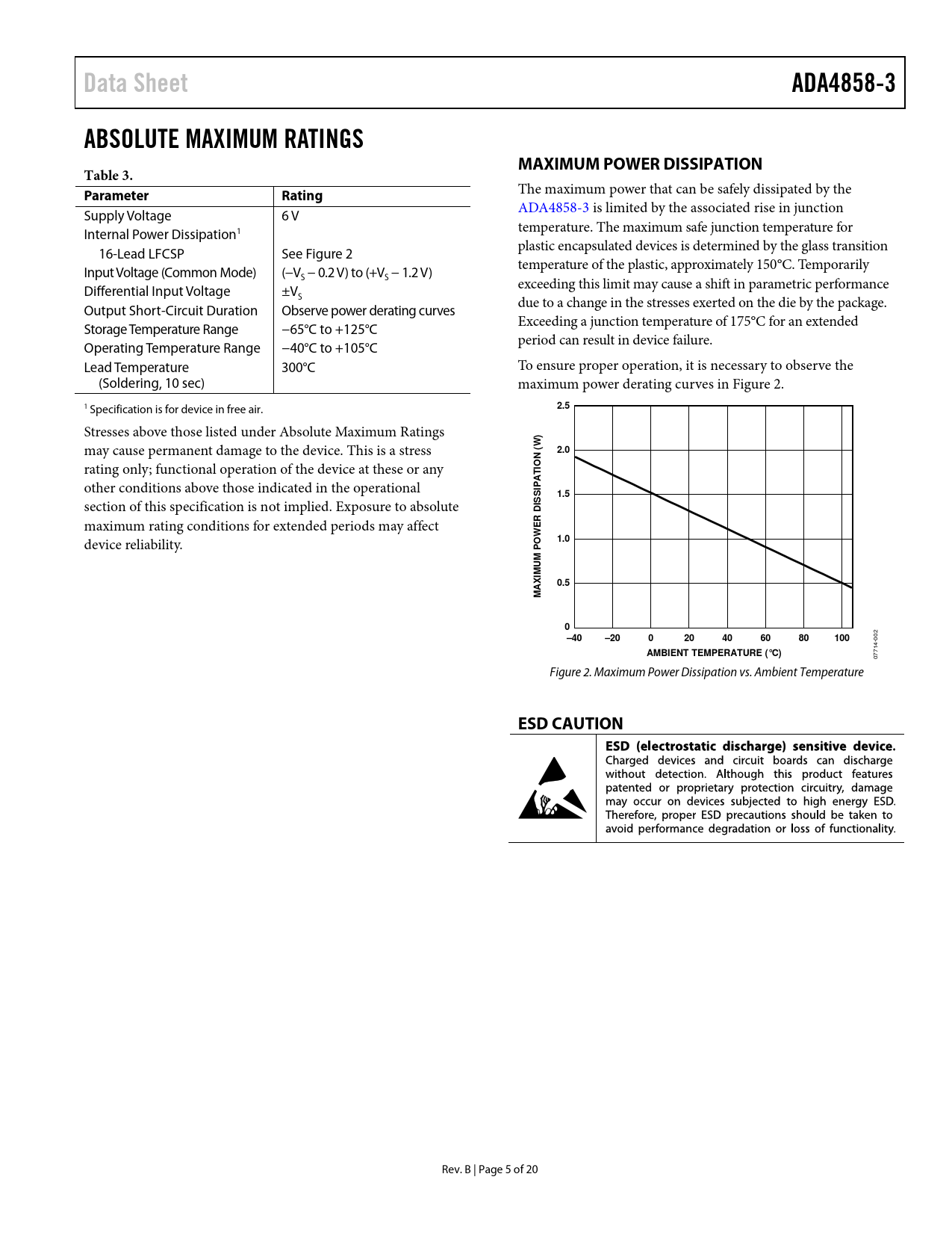 Data Sheet. ADA4858-3. ABSOLUTE MAXIMUM RATINGS. MAXIMUM POWER DISSIPATION. Table 3. Parameter. Rating. 2.5. 2.0. IO T. 1.5. ISSI D. ER W. 1.0