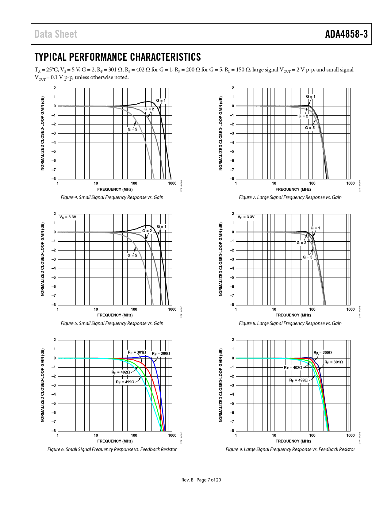 07714- 07714- Figure 5. Small Signal Frequency Response vs. Gain Figure 8. Large Signal Frequency Response vs. Gain