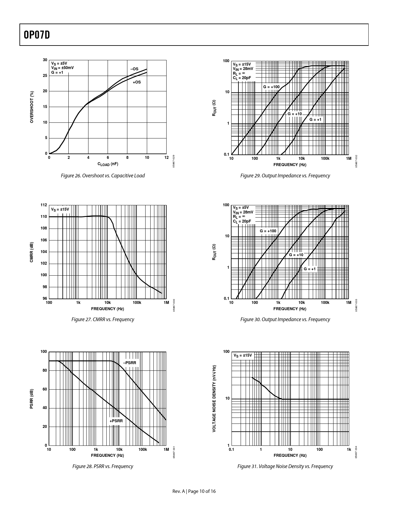 OP07D. 100. VS = ±5V. VS = ±15V. VIN = ±50mV. –OS. VIN = 28mV. G = +1. L = ∞. CL = 20pF. +OS. G = +100. (% T O O. (Ω). UT OR. G = +10. VER. 0.1. 10k. 100k