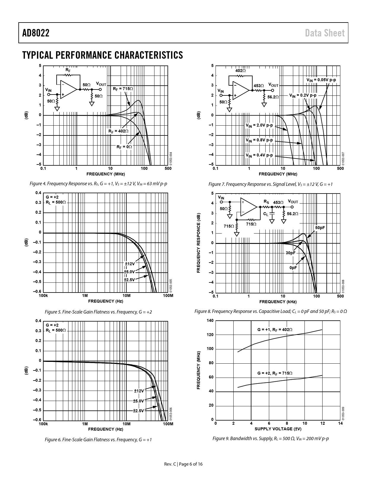 AD8022. Data Sheet. TYPICAL PERFORMANCE CHARACTERISTICS. 402. VIN = 0.05V p-p. VOUT. 453. F = 715. VIN. 56.2. VIN = 0.2V p-p. (dB)